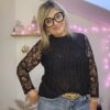 Blouse noire en dentelle manches longues Choklate