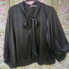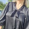 Blouse satinée avec nœud cravate, plis au niveau des épaules, manches 3/4 bouffantes et élastique au bout des manches, nœud cravate à nouer ou à laisser ouvert. TU.