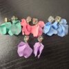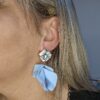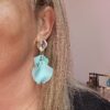 Boucles d’oreilles percées 4 feuilles en plexiglas, différentes couleurs, différents cabochons, made in Italie.