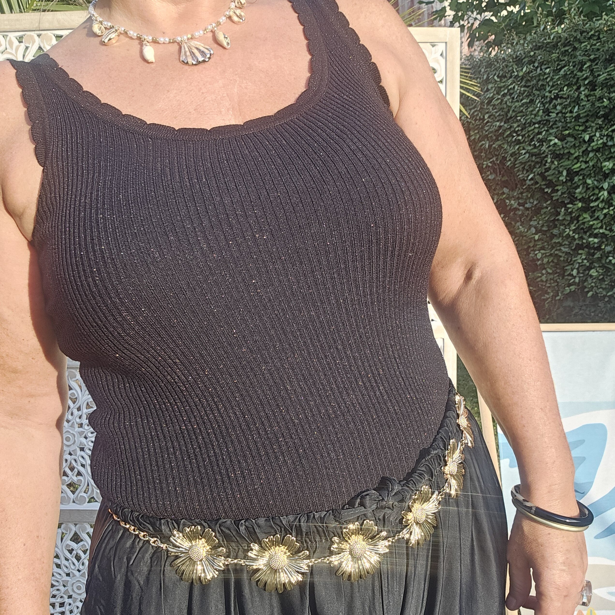 Mon regard pailleté : La ceinture finit une tenue, à mettre sur un pantalon large, un jean’s, une jupe, ou une robe.