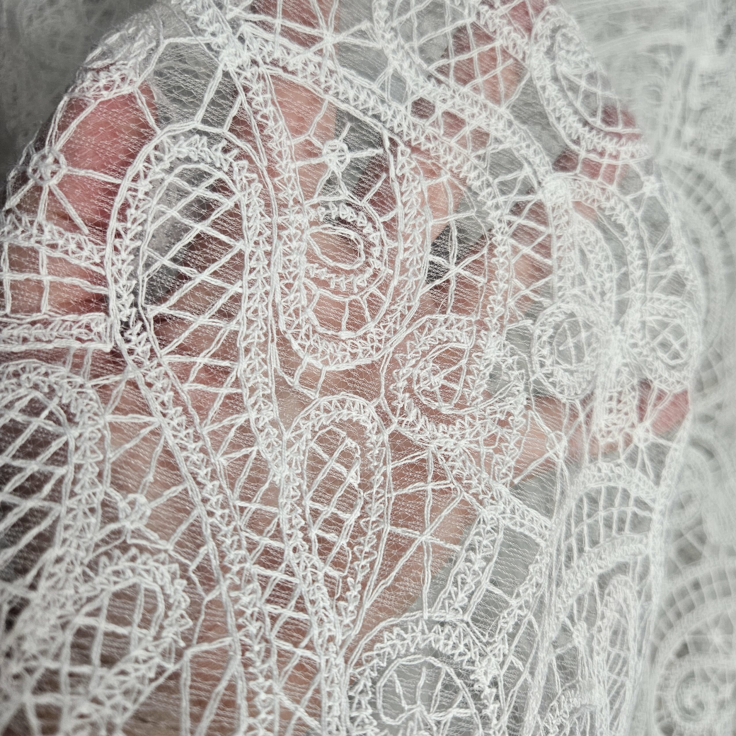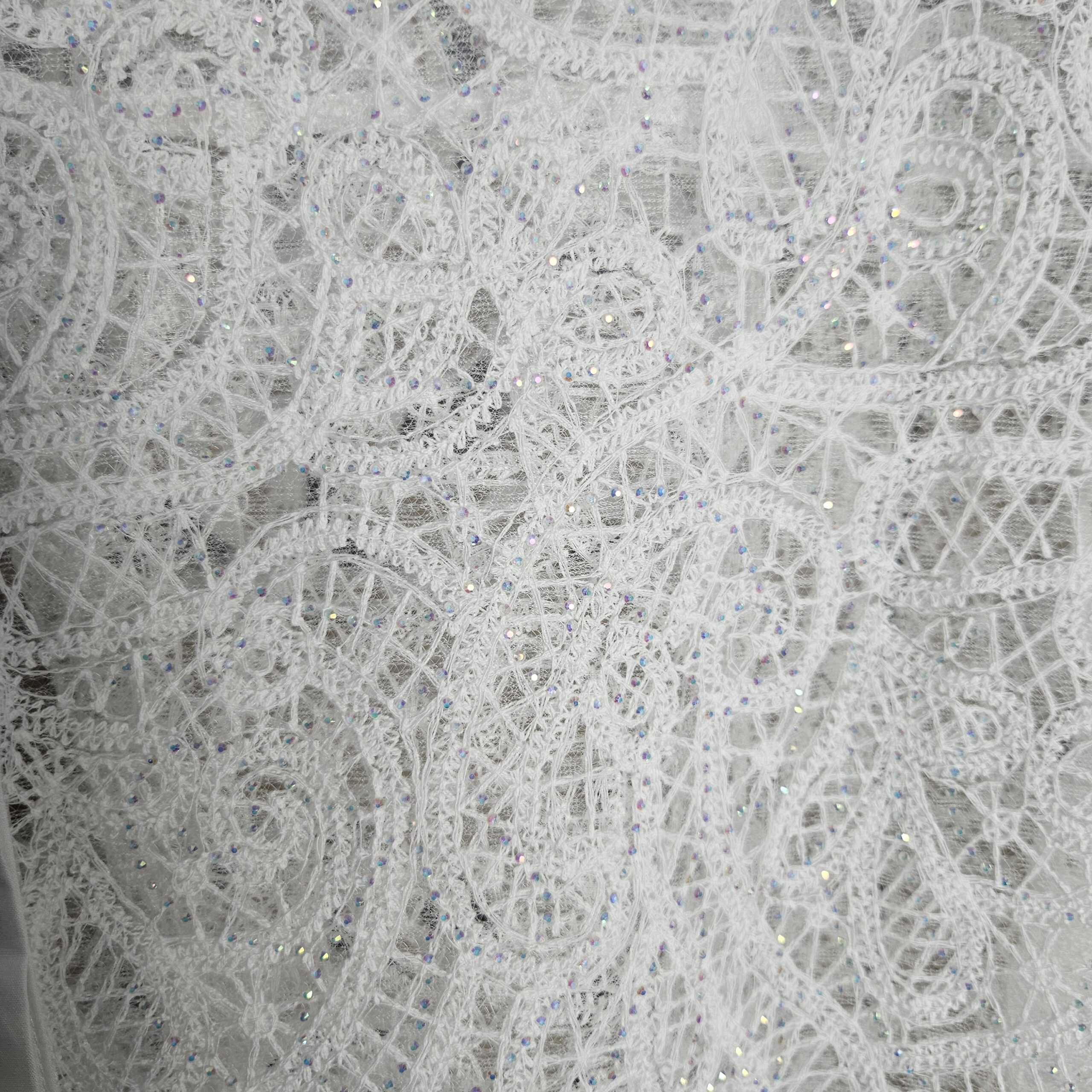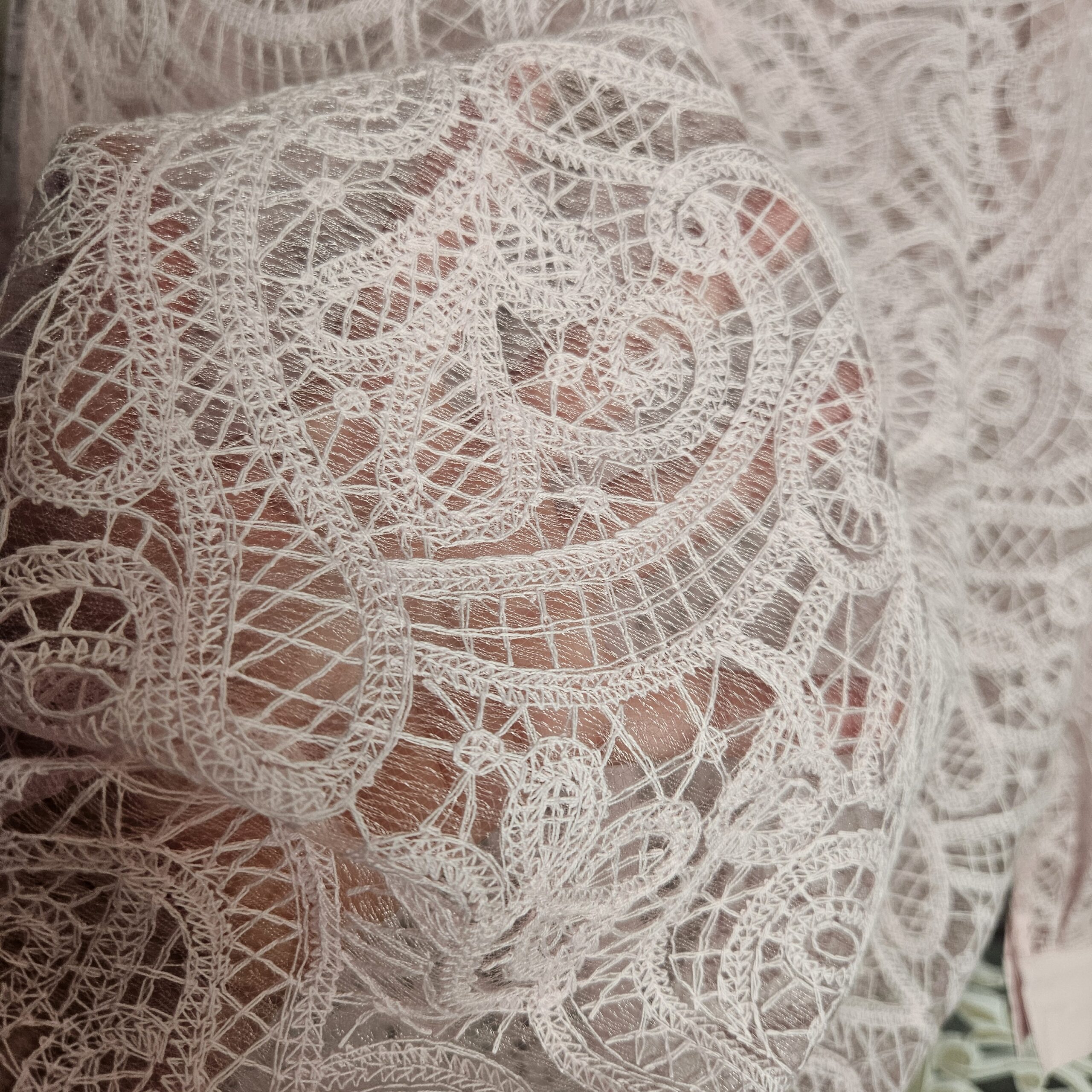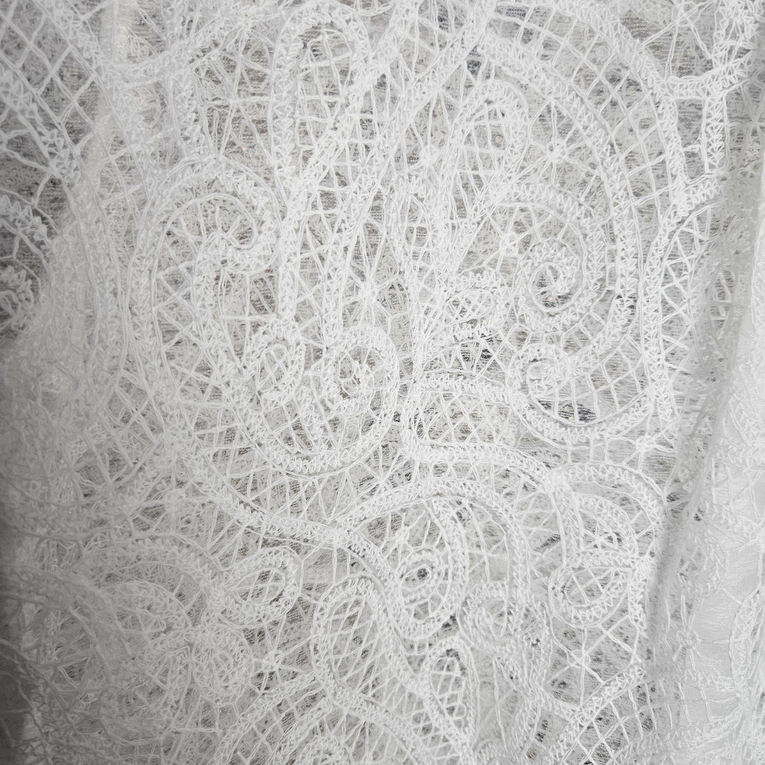 Chemise en dentelle avec des petits strass sur le devant. Col, bout des manches et boutonnière en tissu uni. Manches longues. Existe en blanc et rose clair. TU