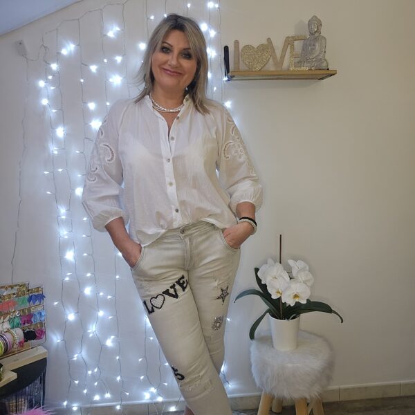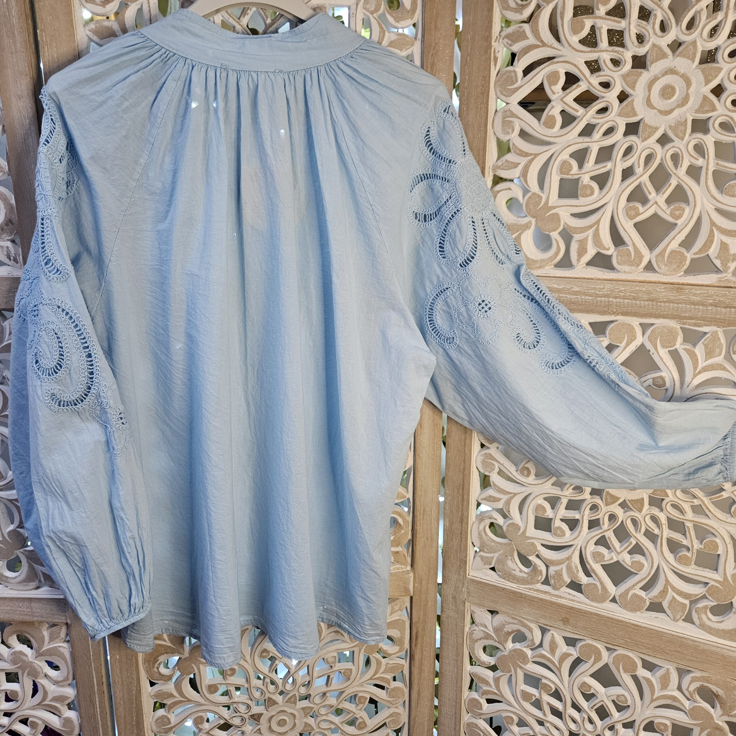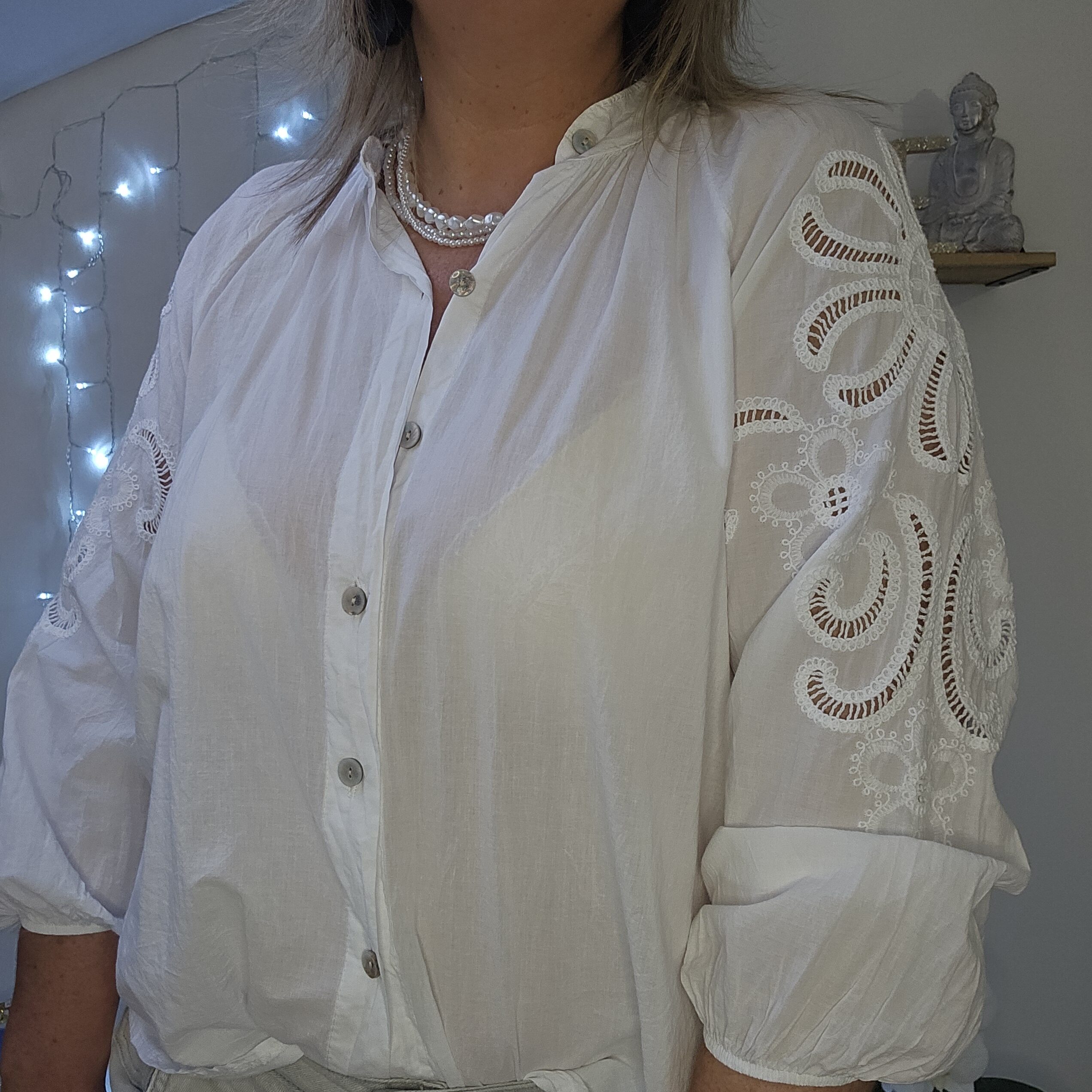 Mon regard pailleté : On aime cette chemise avec ses broderies et ses manches « ballon » ! Très agréable à porter, et légère. Convient à différentes morphologies.