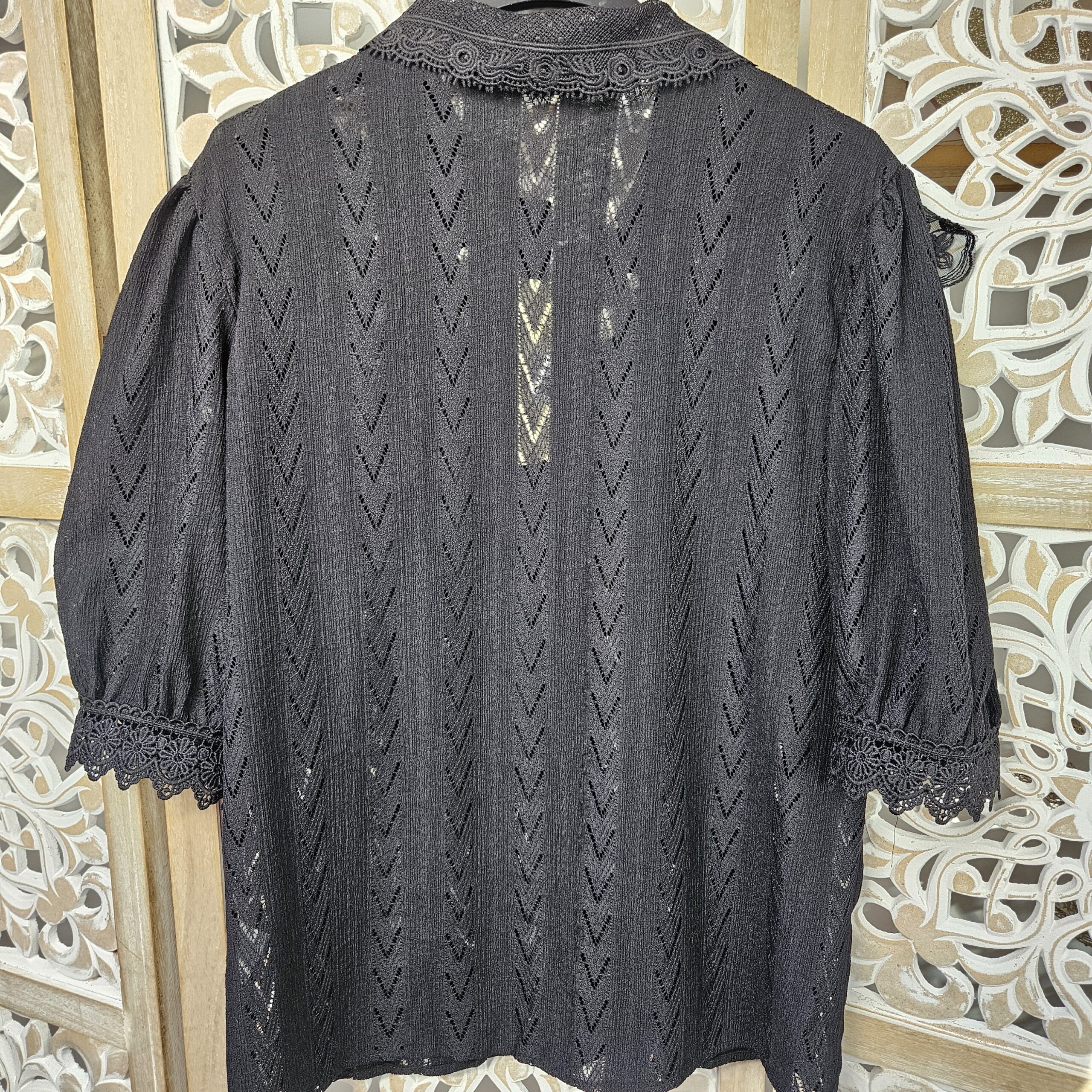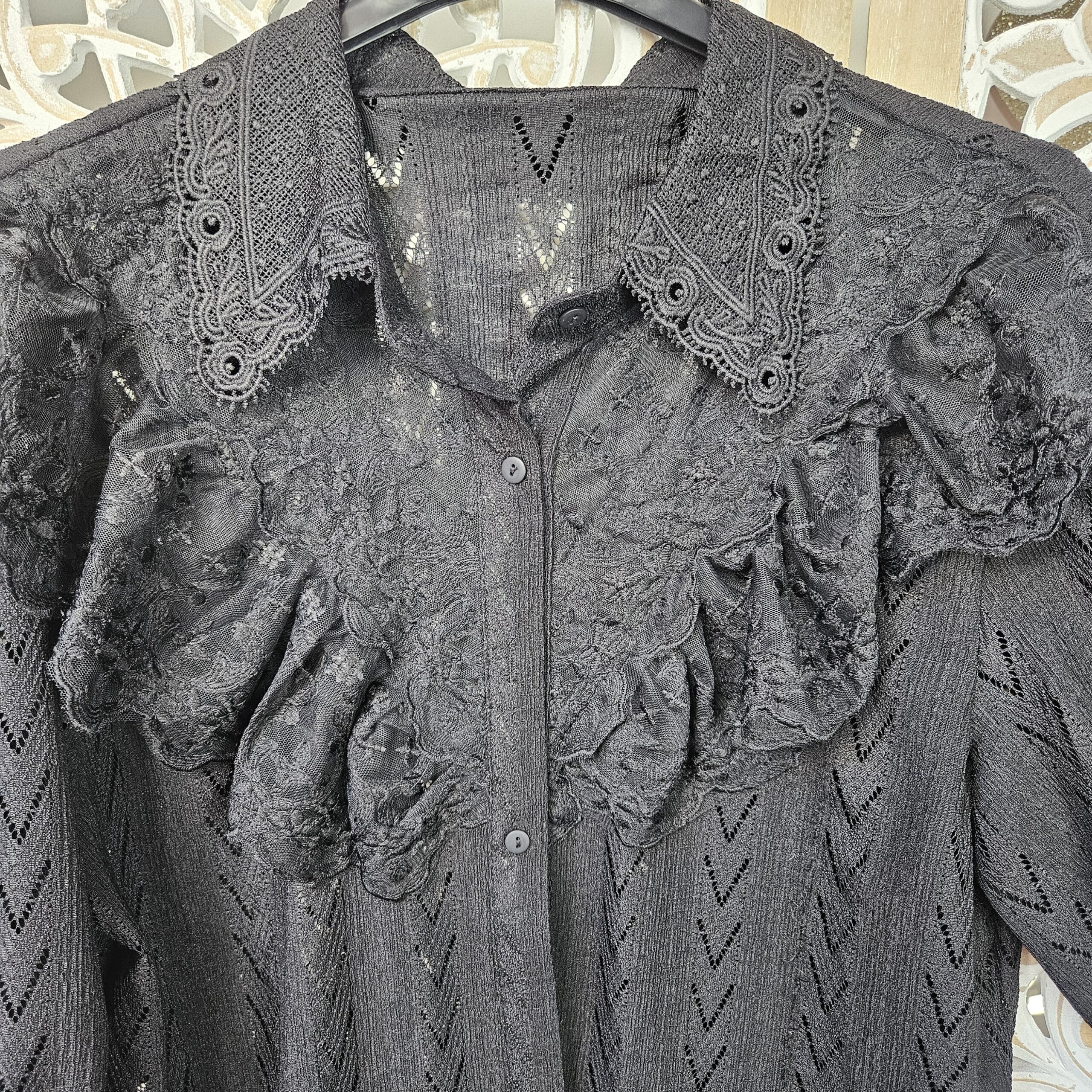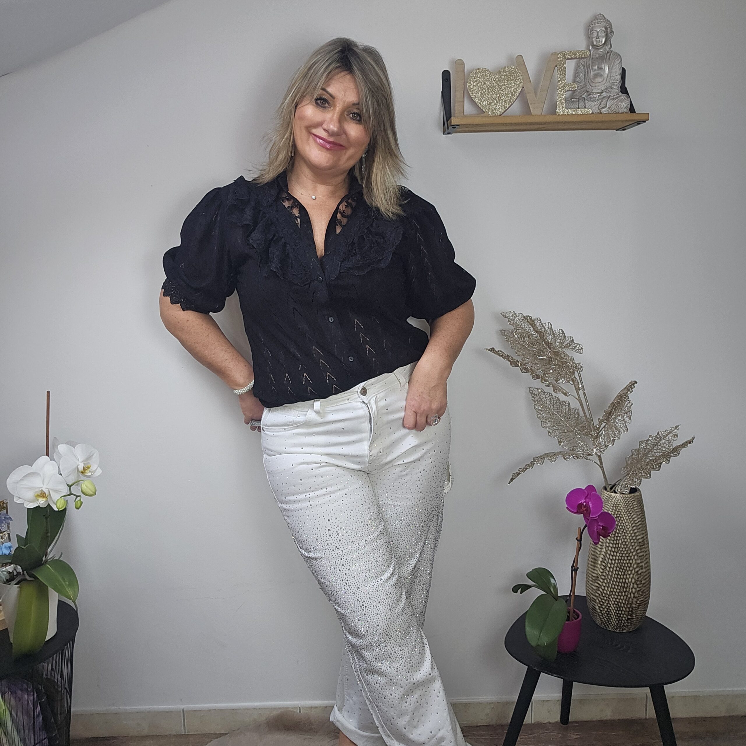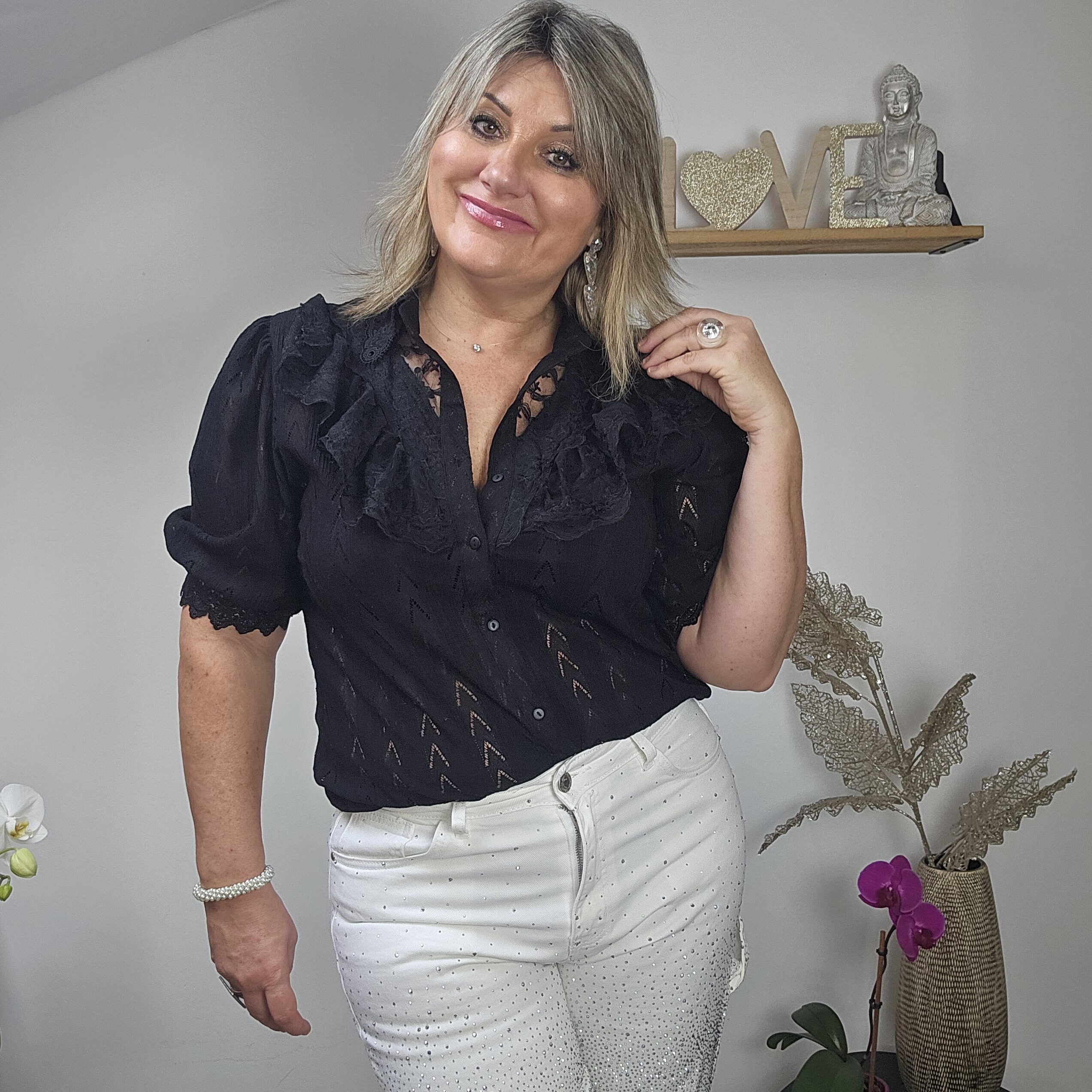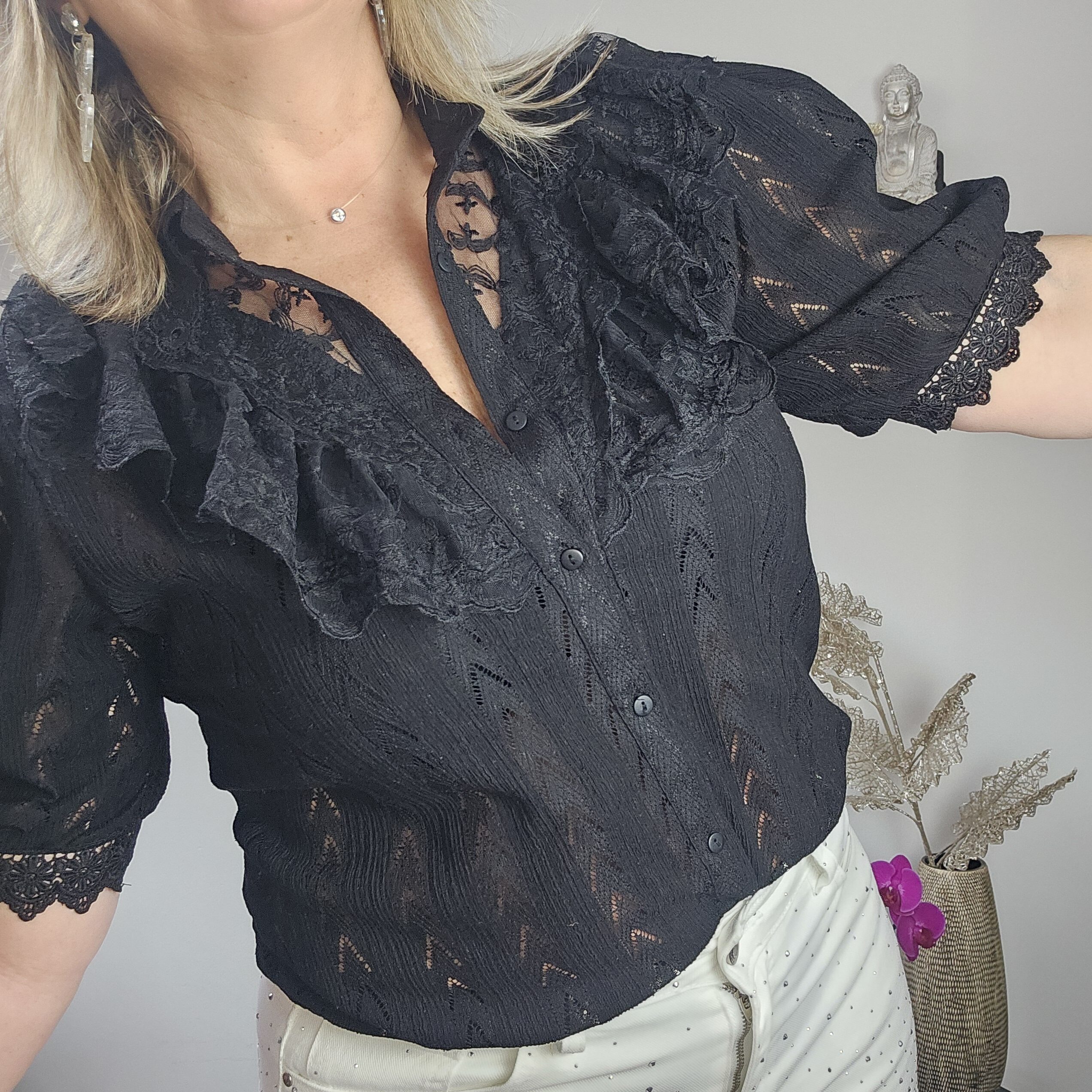 Mon regard pailleté : Chemise absolument magnifique, stylée avec la dentelle, peut se porter avec un pantalon, jean’s ou jupe.