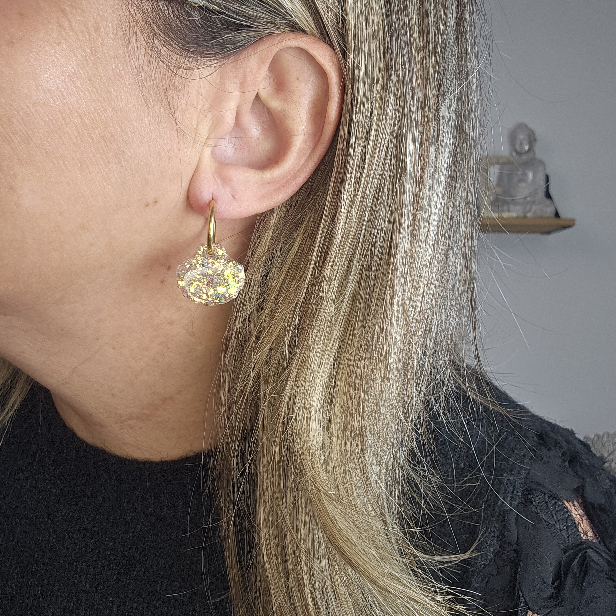 Mon regard pailleté : Fabrication artisanale et locale, par les mains de Sylvie. En raison de cette fabrication artisanale, chaque boucle d’oreille est unique et la disposition des paillettes peut varier par rapport aux photos de présentation. Les bijoux sont encore plus beaux en vrai !