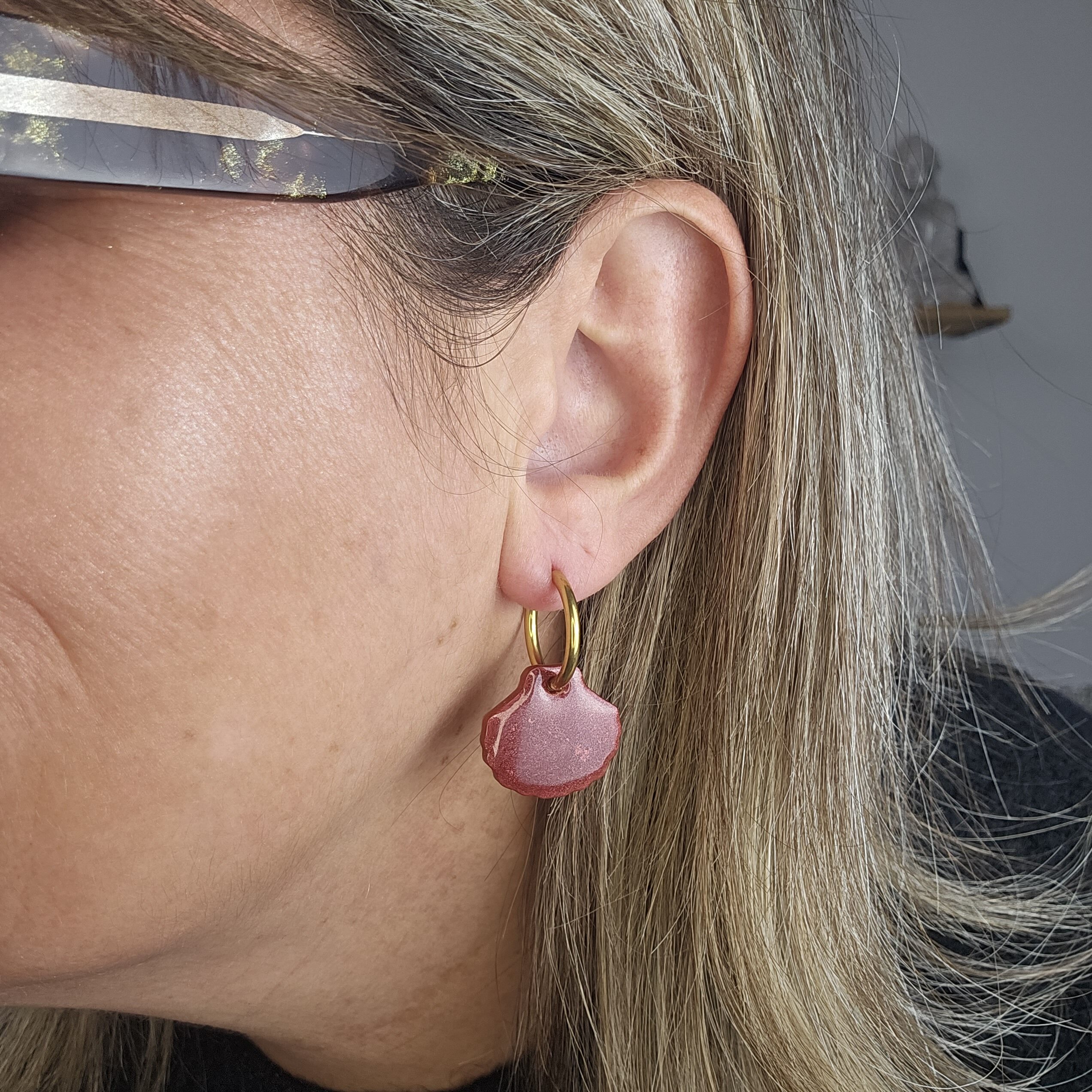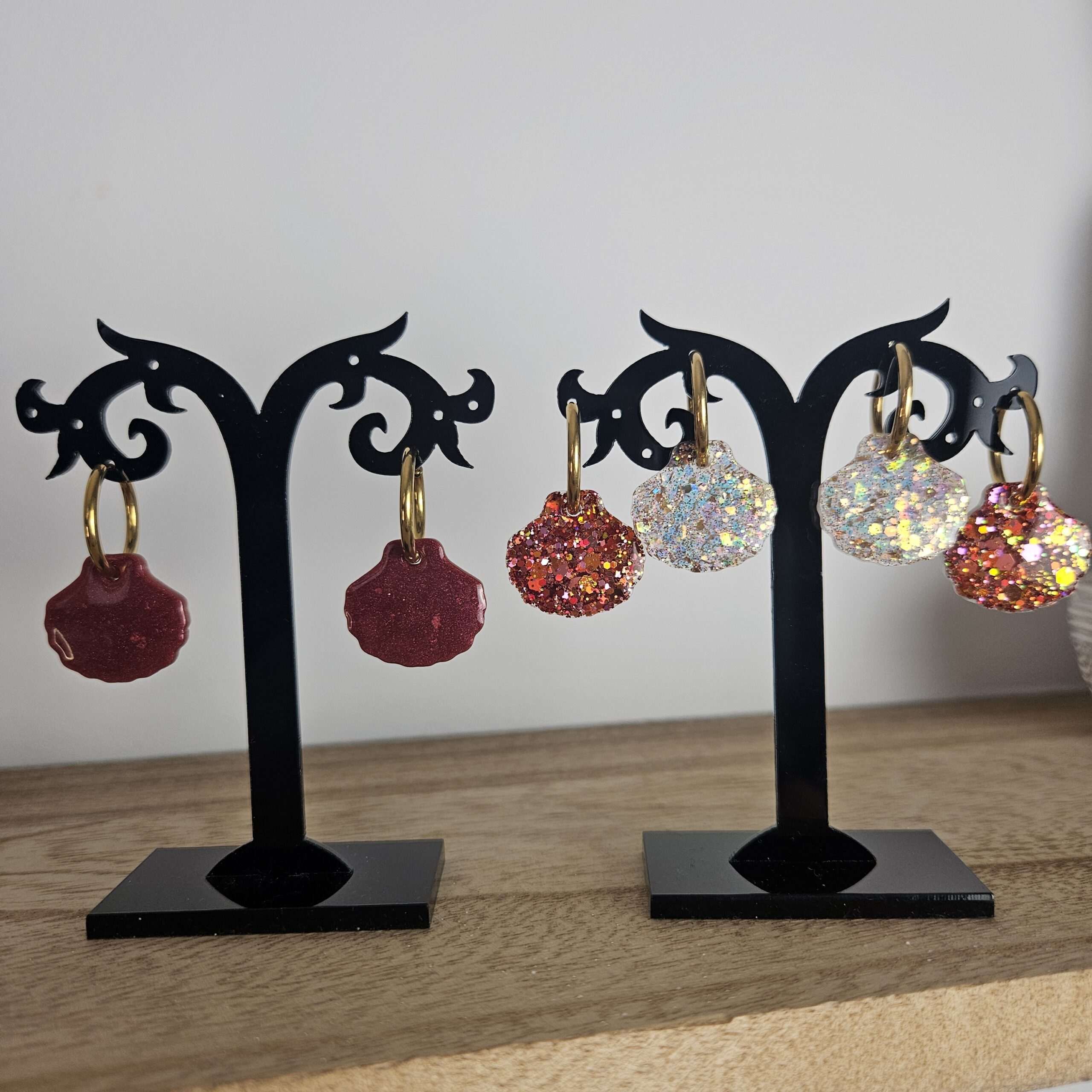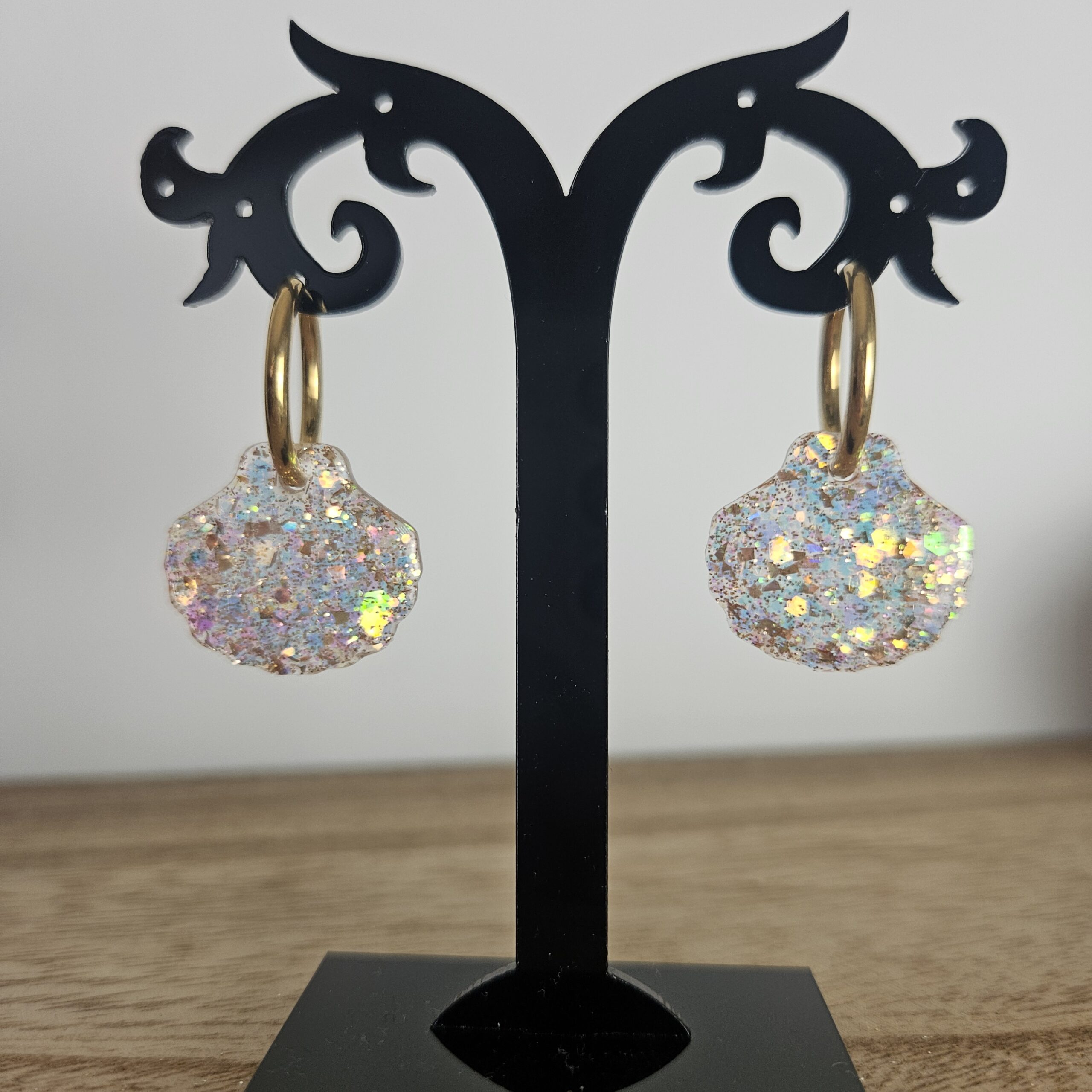 Créole coquillage pailleté, taille 2 cm, créole 1,4 cm, composée de paillettes de différentes tailles, en résine époxy avec un support en acier inoxydable, qui peut être variable : lisse, martelé.. Ses boucles d’oreilles complèteront vos looks du quotidien aux moments plus spéciaux.