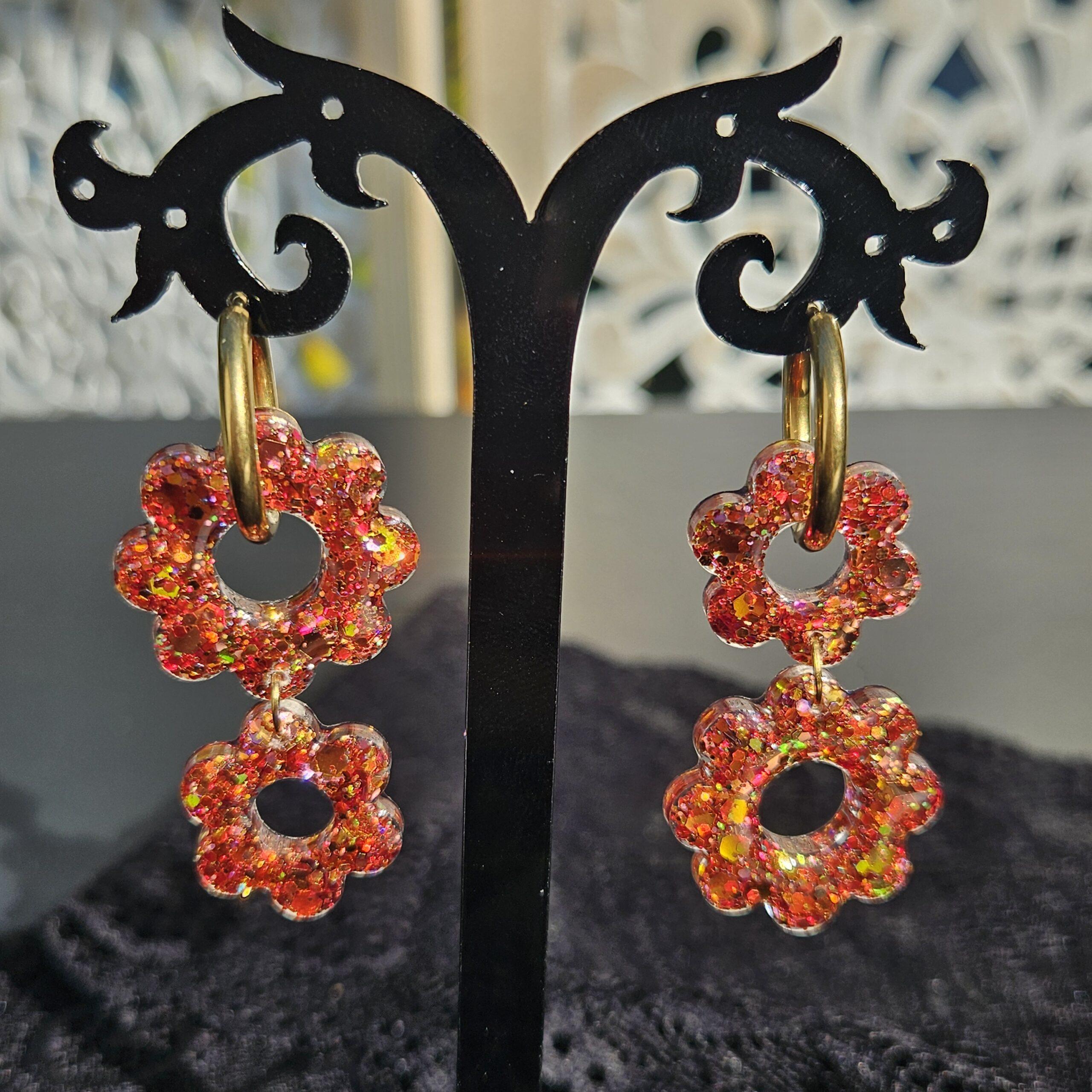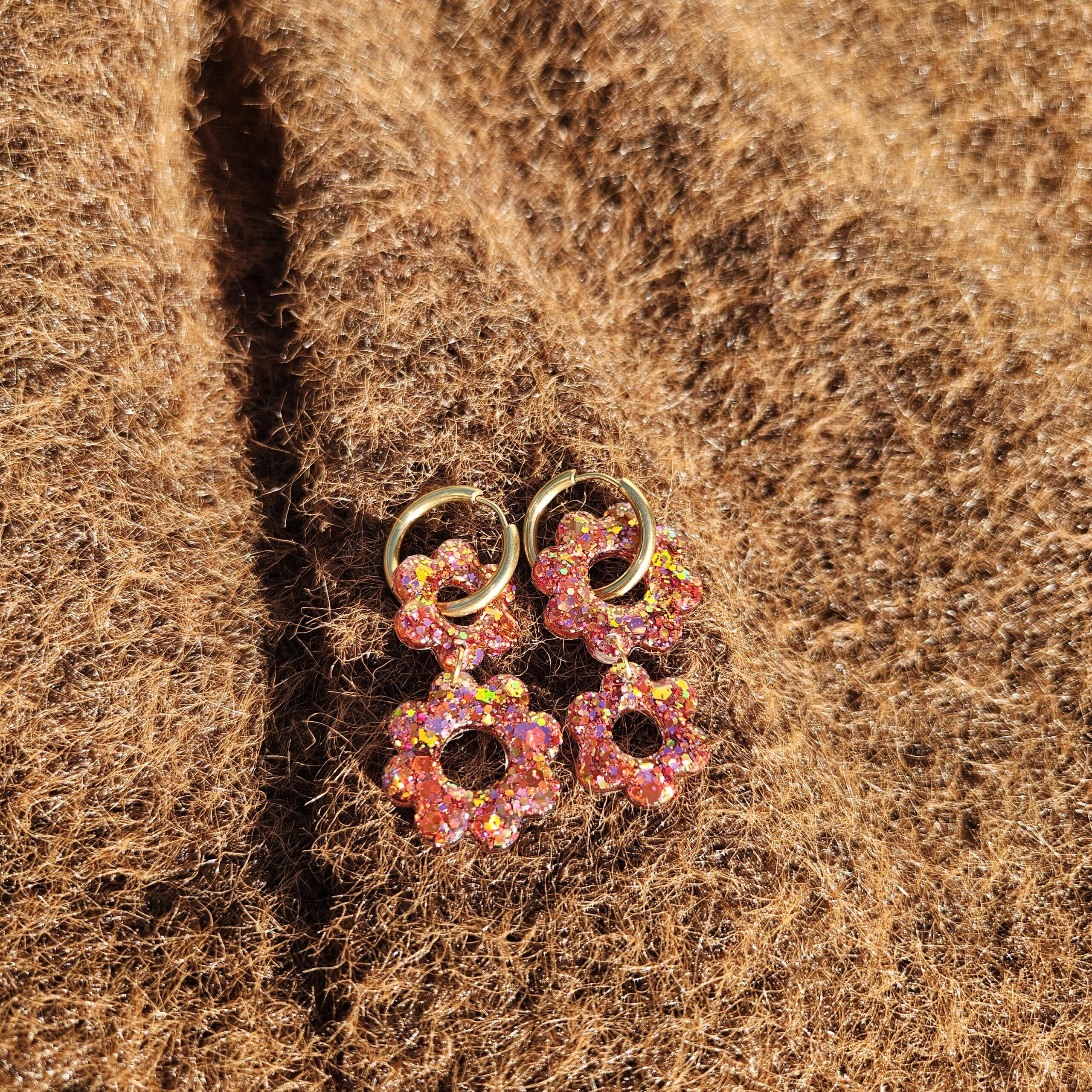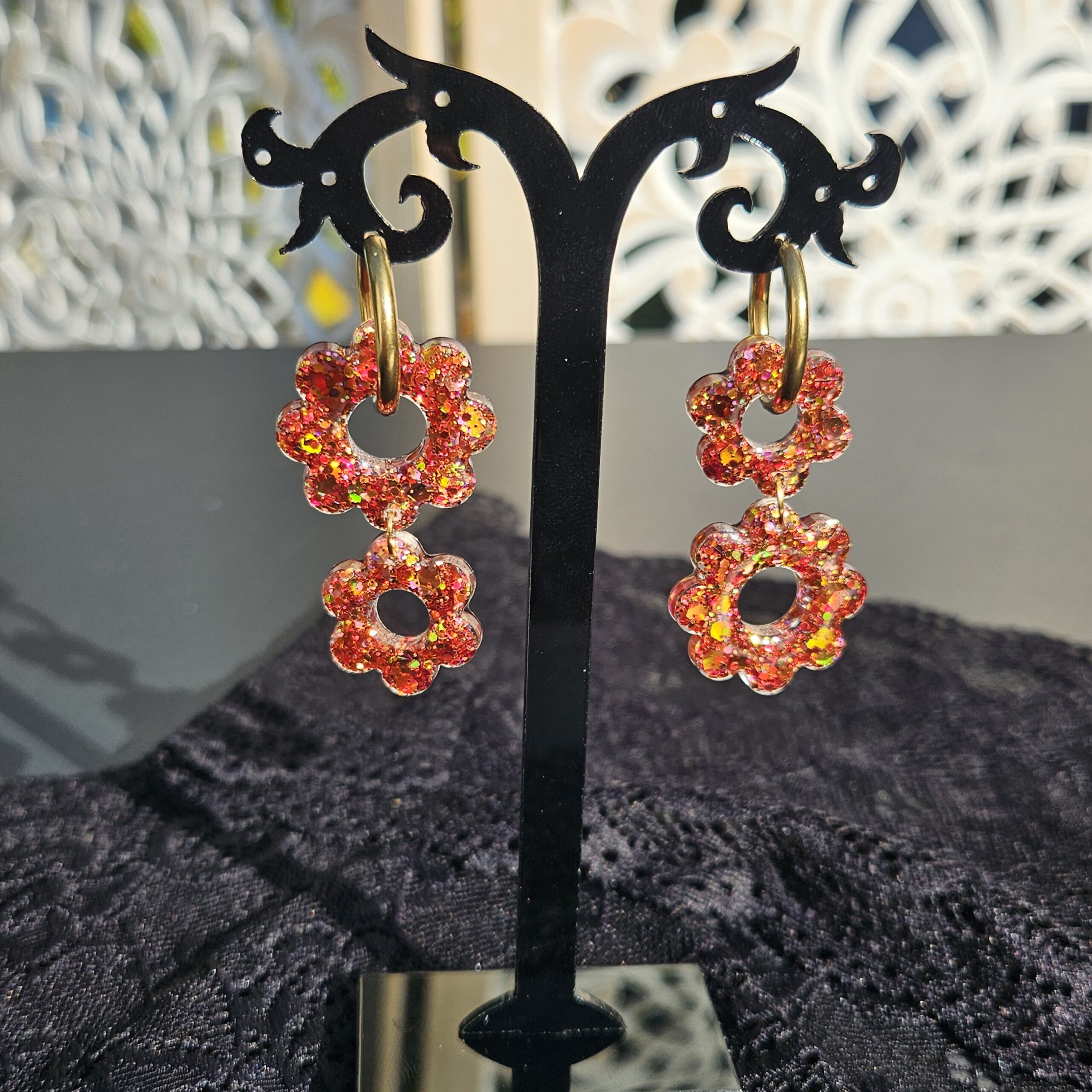 Créole double avec 2 fleurs pailletées de 8 pétales, diamètre 2,5 cm et 2 cm, qu’on peut mettre dans les 2 sens, en mettant la créole soit dans la petite fleur soit dans la grande. Elle est composée de paillettes de différentes tailles, en résine époxy avec un support en acier inoxydable, qui peut être variable : lisse, martelé.. Ses boucles d’oreilles complèteront vos looks du quotidien aux moments plus spéciaux. A associer absolument avec les bagues !!!