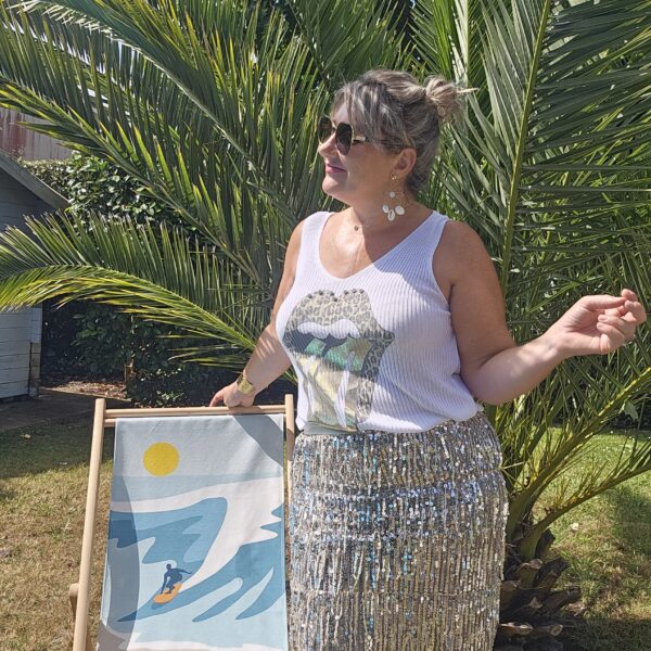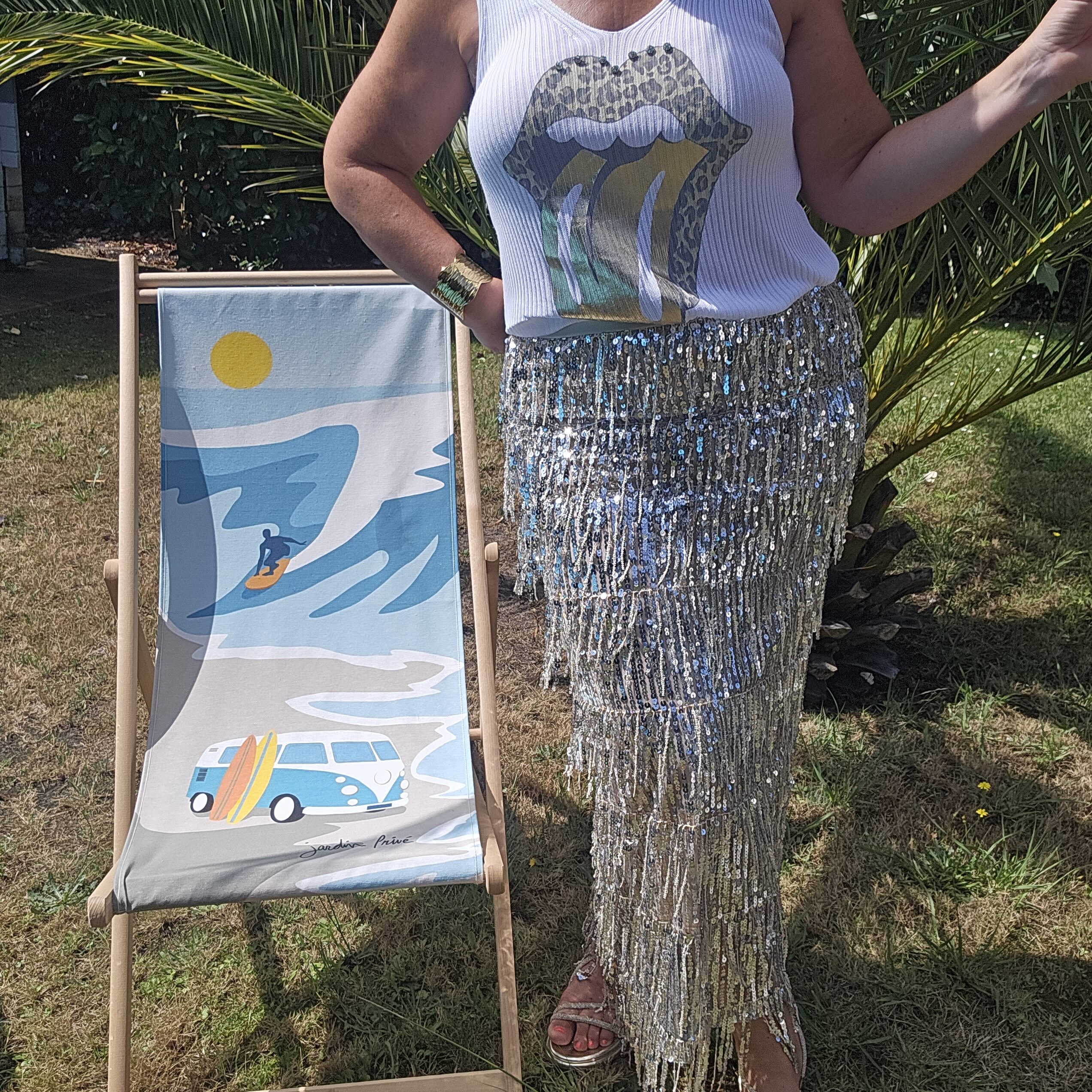 Mon regard pailleté : On aime l’originalité de ce débardeur !Largeur poitrine : 50 / 57 cm