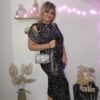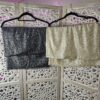 Echarpe de soirée brillante, type étole, à mettre avec vos tenues de fêtes,sur une robe, une combinaison, un top en sequins… Petites franges en bas de l’écharpe. Existe en noir argenté, et champagne doré.