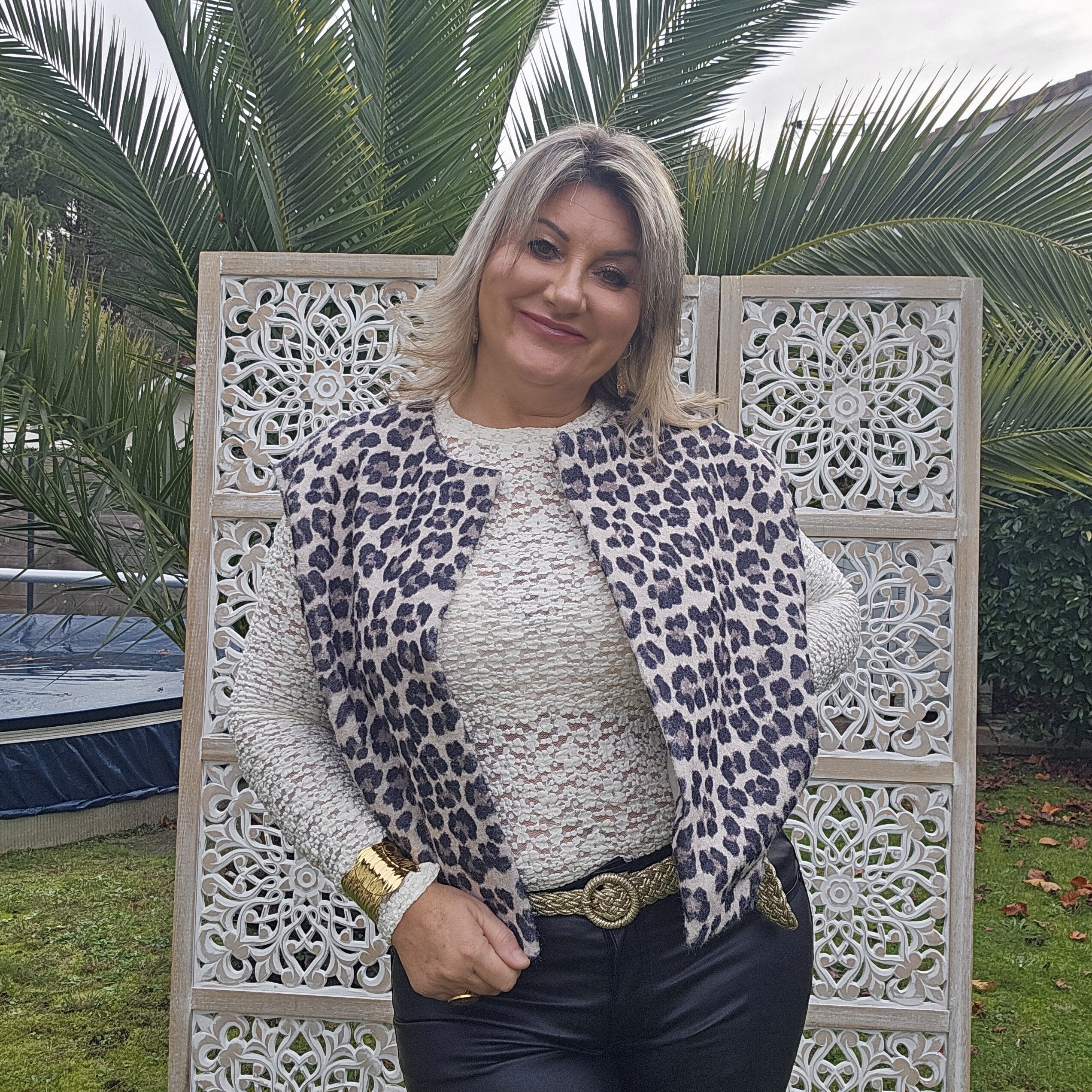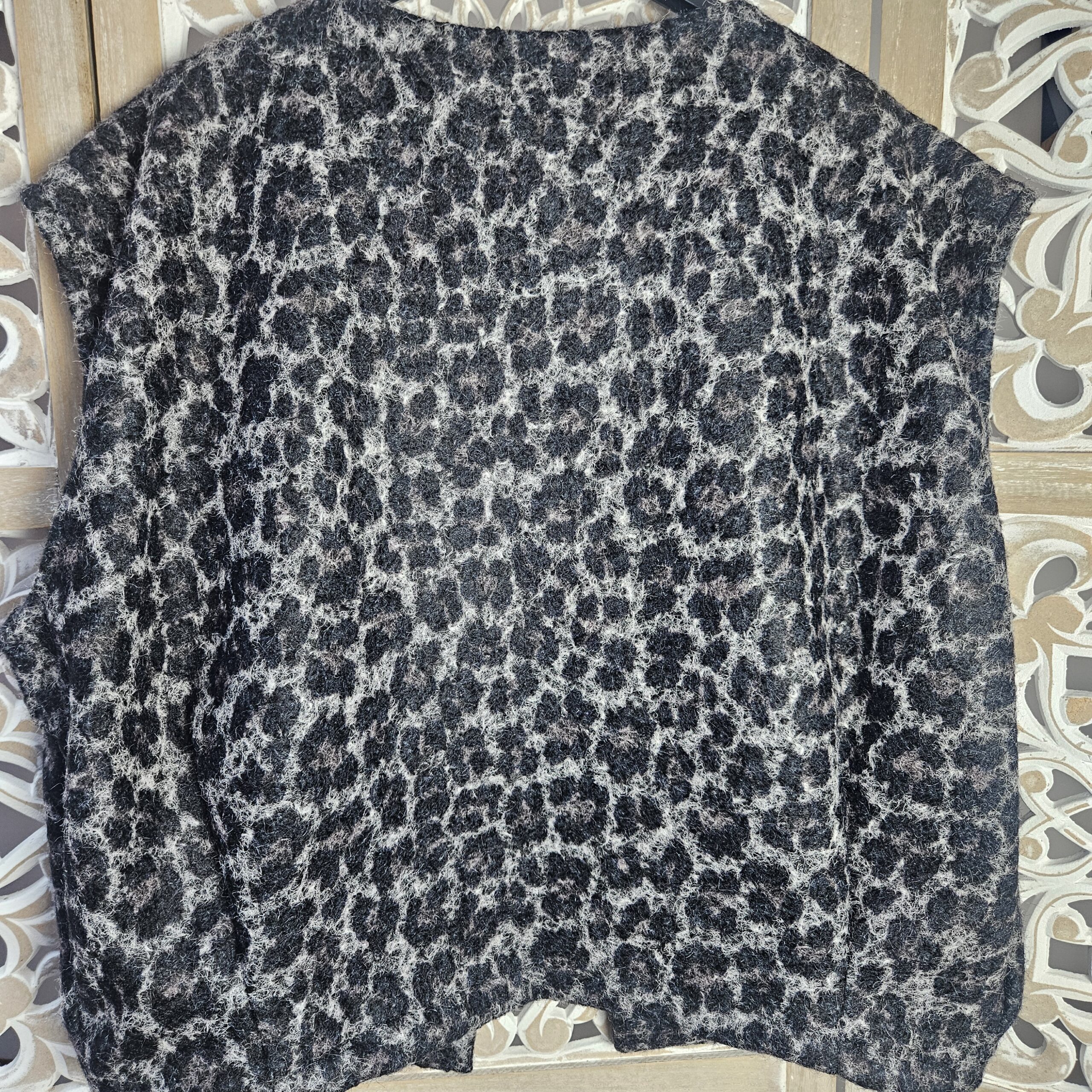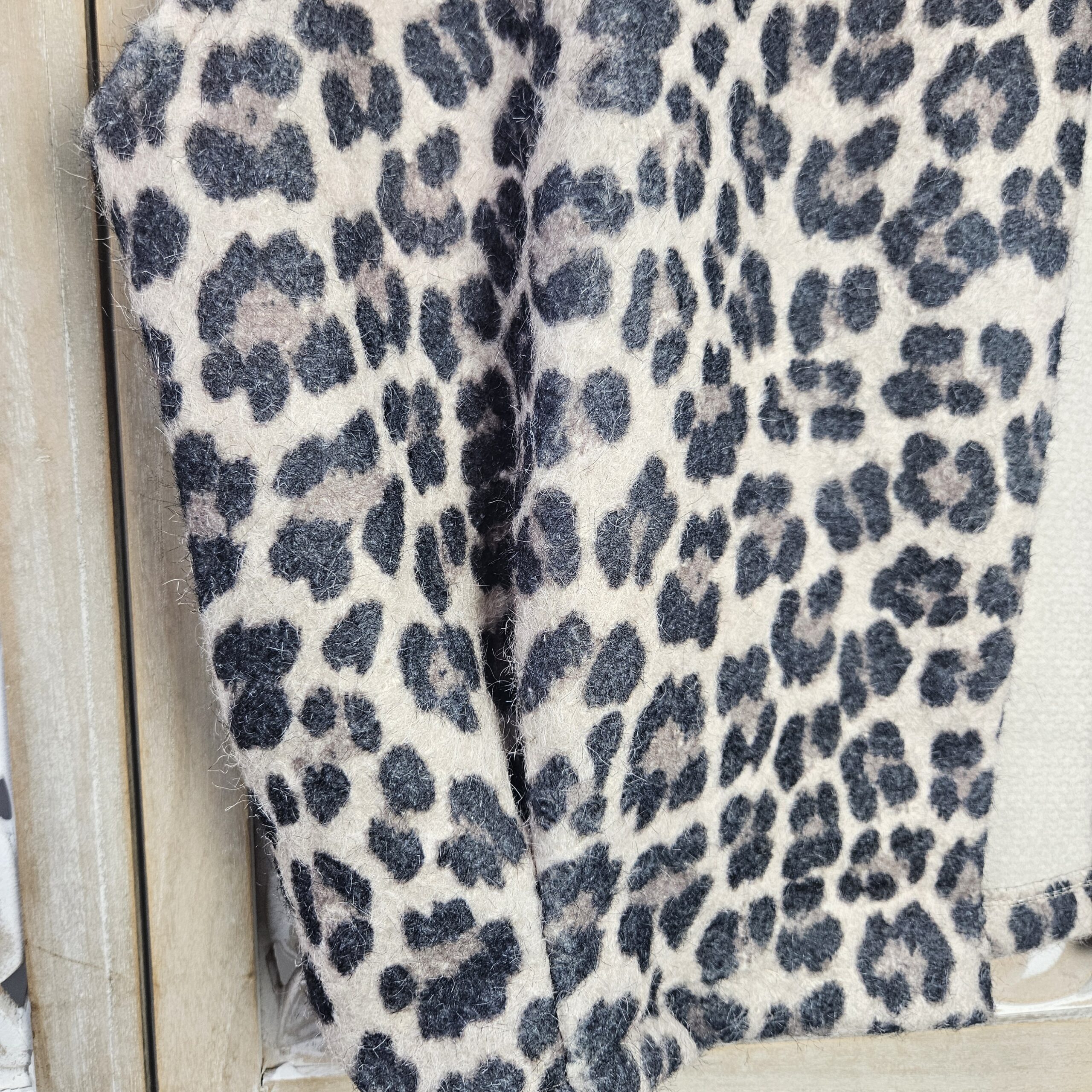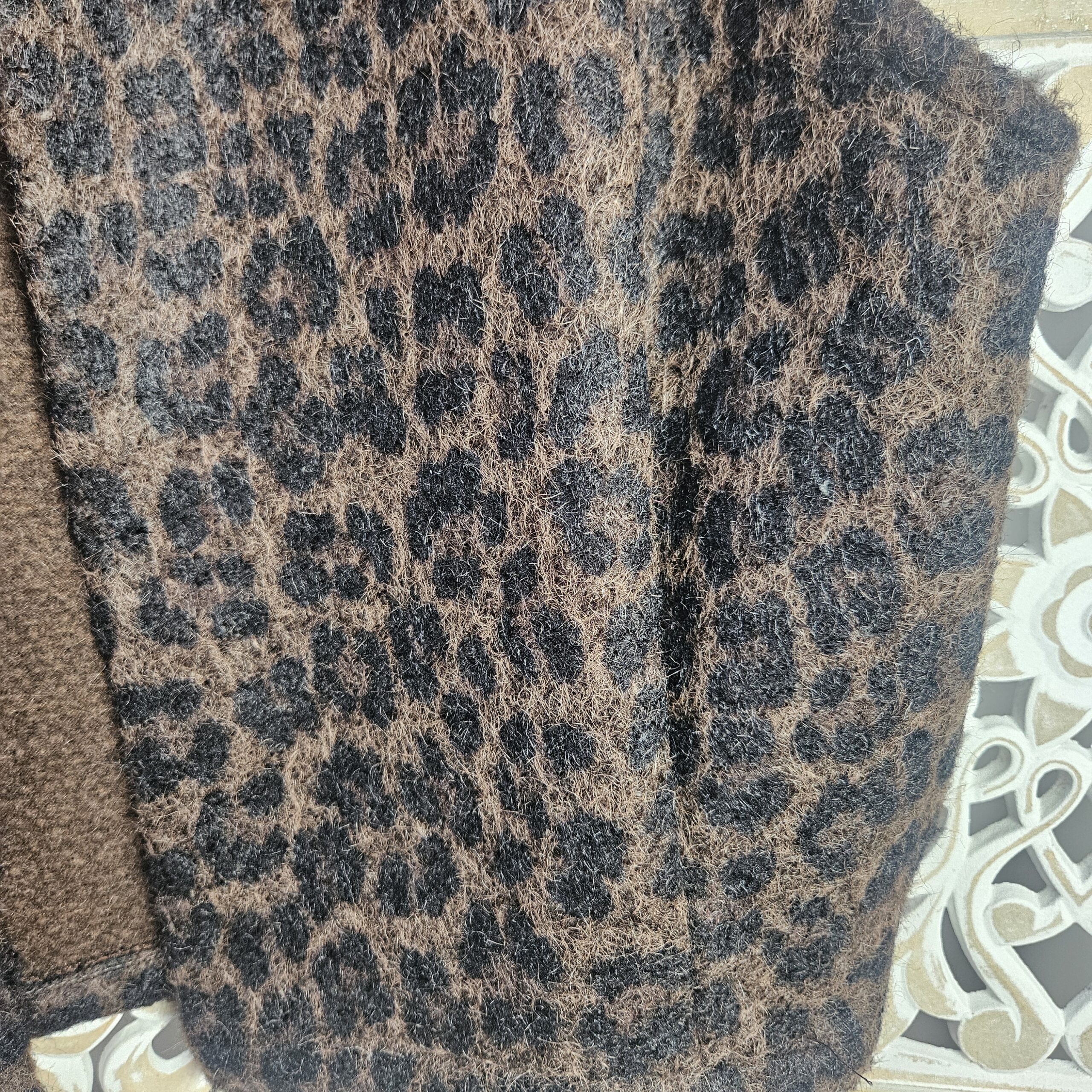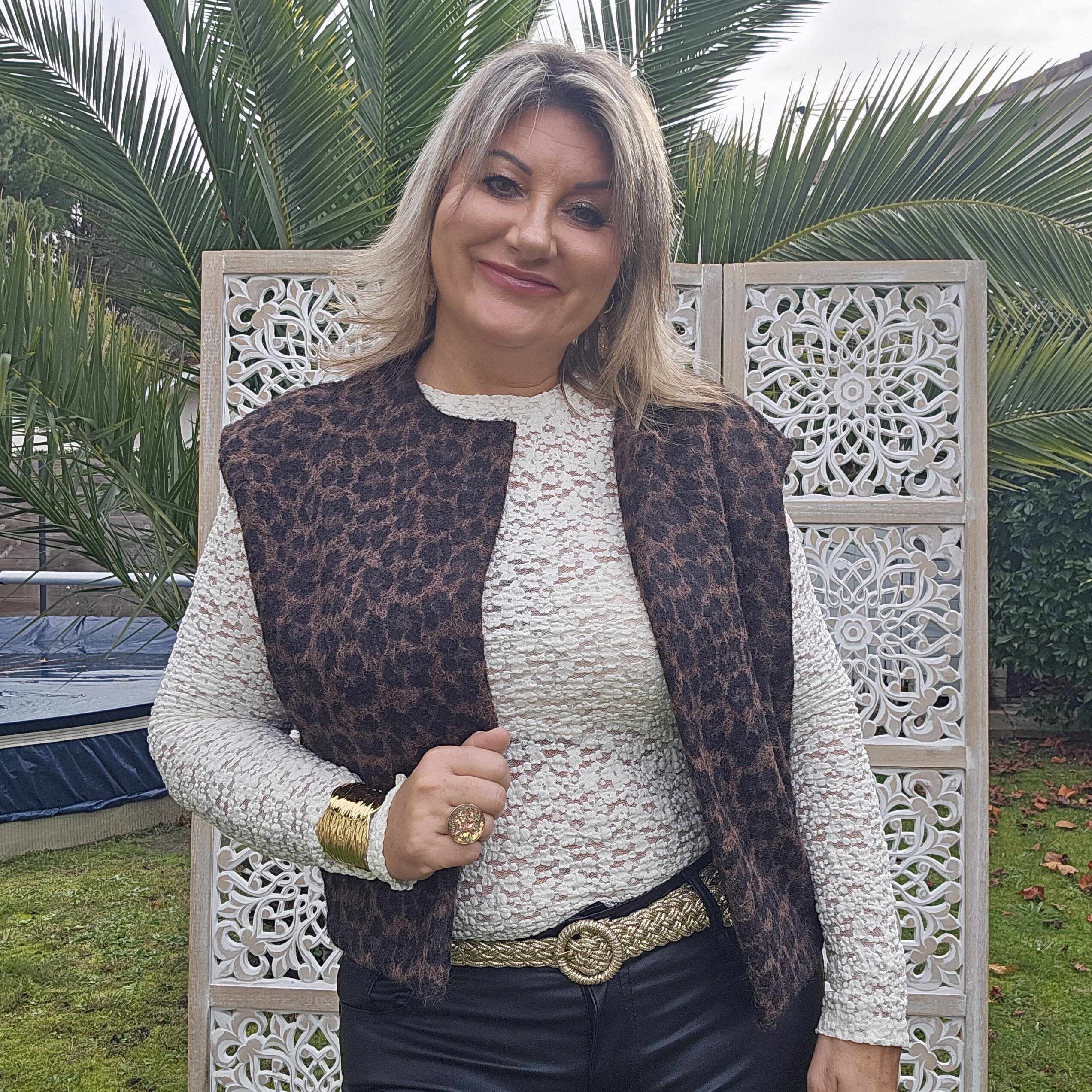 Gilet cintré à la taille sans manches léopard, chaud et très doux aspect laine bouillie (étiquette 100% Polyester), ne pique absolument pas ! Poches sur les côtés.