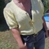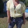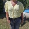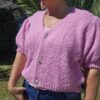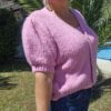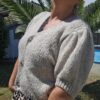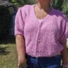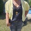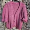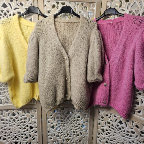 Gilet court, manches courtes bouffantes élastiquées en froufrou, fermeture avec 3 boutons dorés, très doux, ne pique pas malgré la laine. TU (36/44)