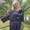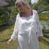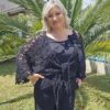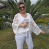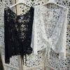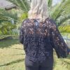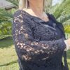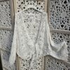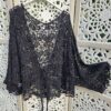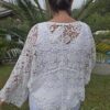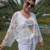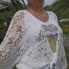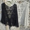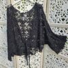 Gilet dentelle en crochet bohème, en coton, existe en blanc et en noir, tendance, manches chauve souris, fermeture liens devant. TU.