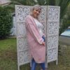 Gilet long avec des coutures apparentes au niveau des épaules et des manches, fente sur les côtés, manches longues. IL N’Y A PAS DE LAINE !! TU (36/44) oversize pour les petites tailles .