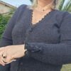 Gilet noir, col et manches en dentelle, type broderie anglaise, TU.