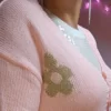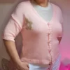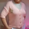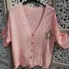 Gilet manches courtes avec des boutons, 1 fleur dorée sur la poitrine, rose bébé, TU.