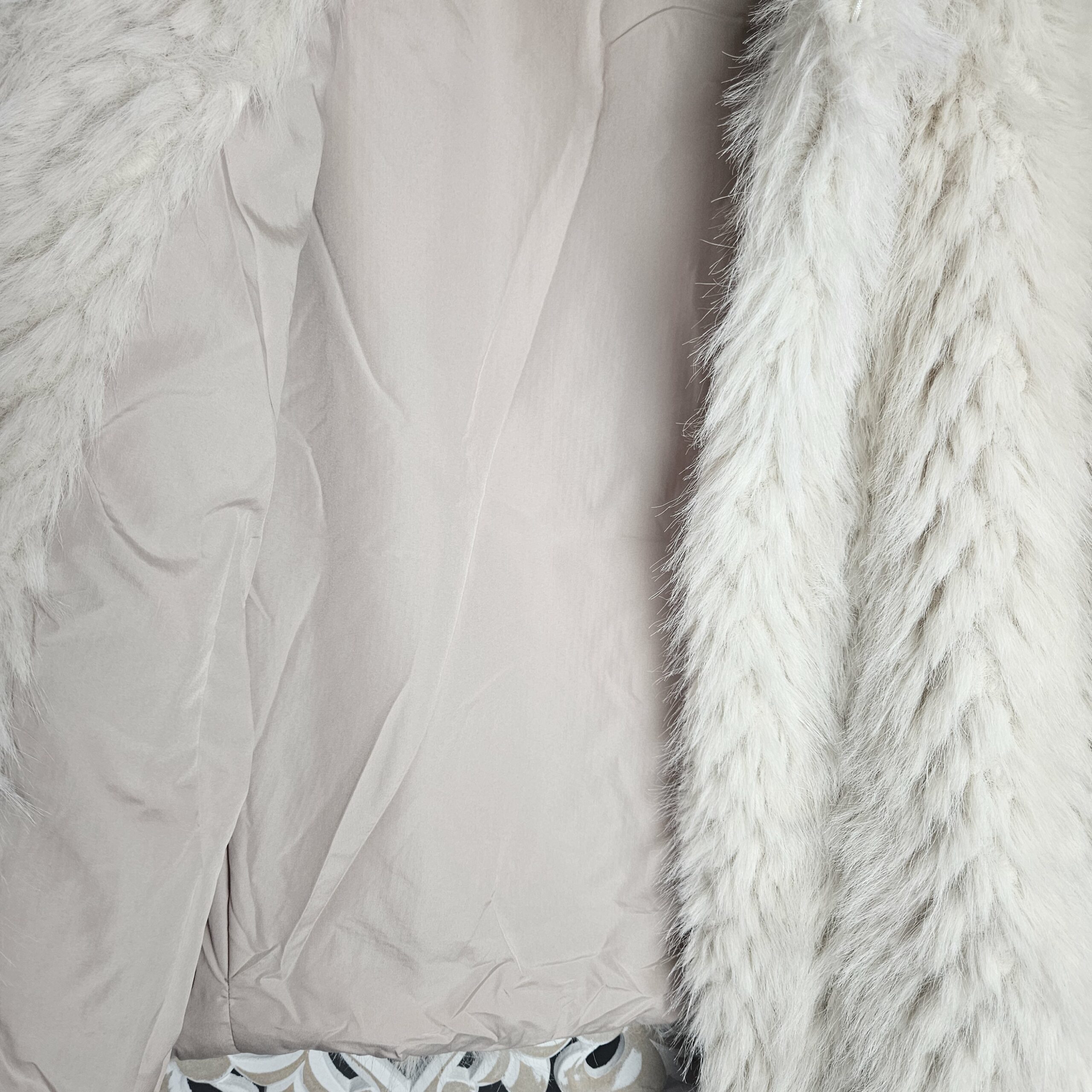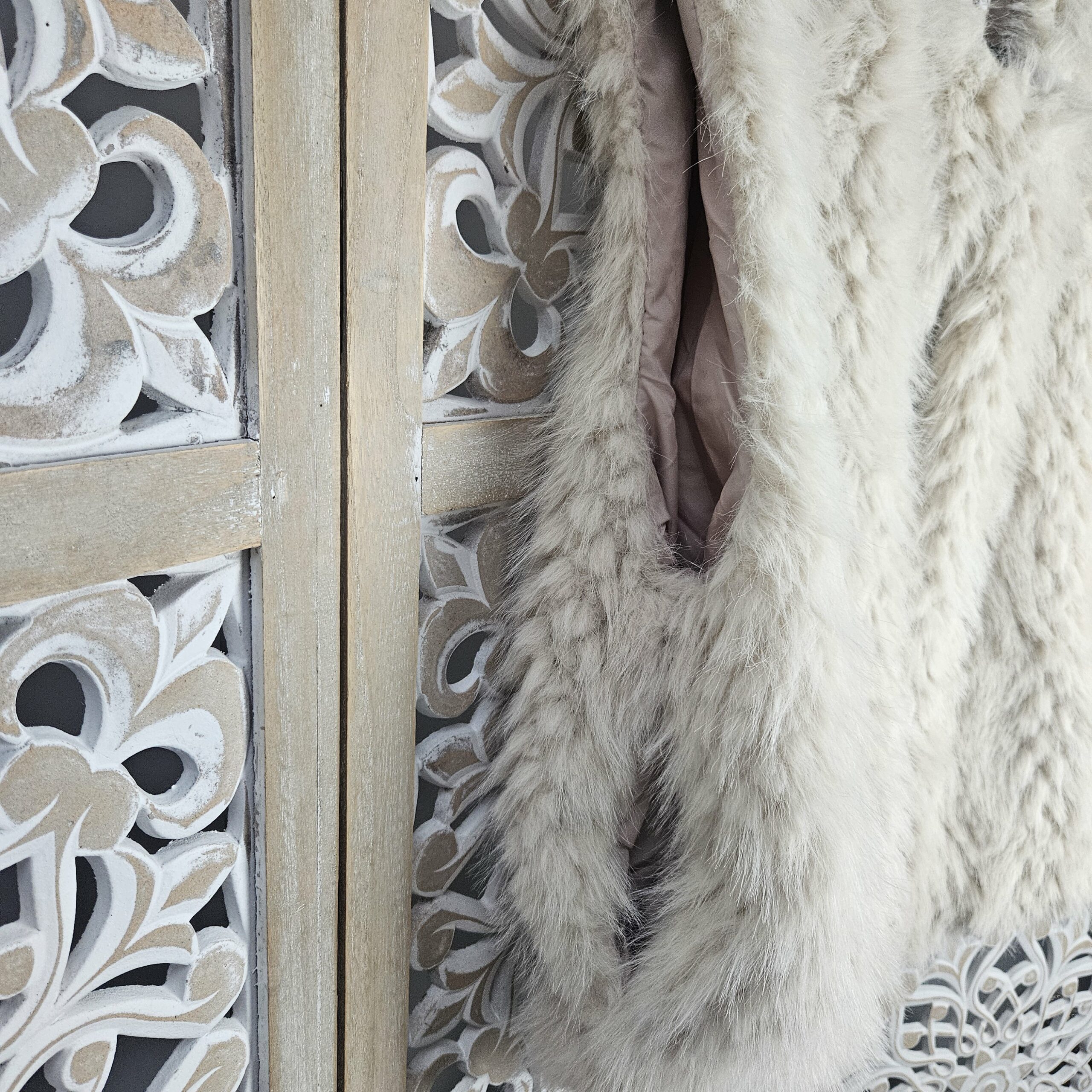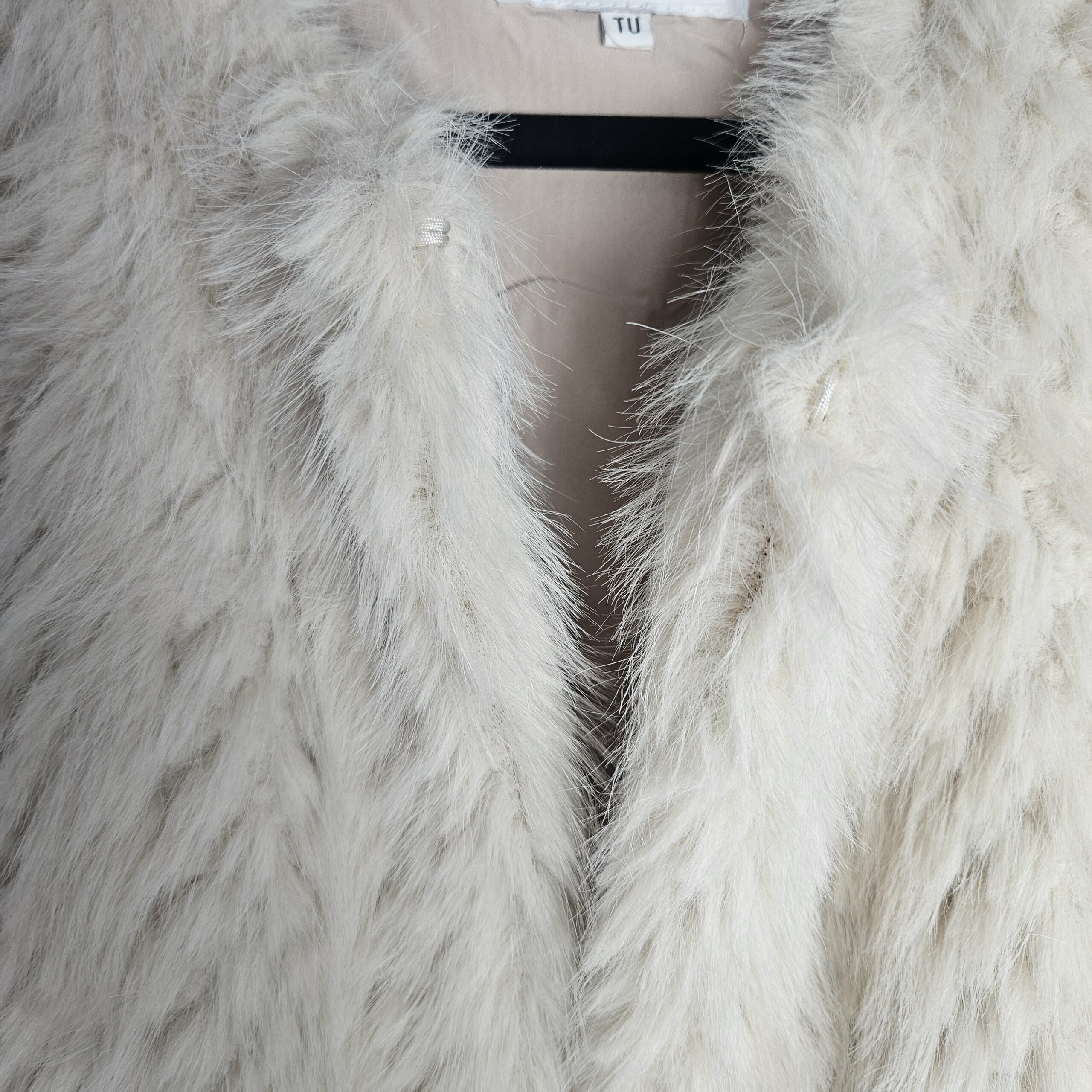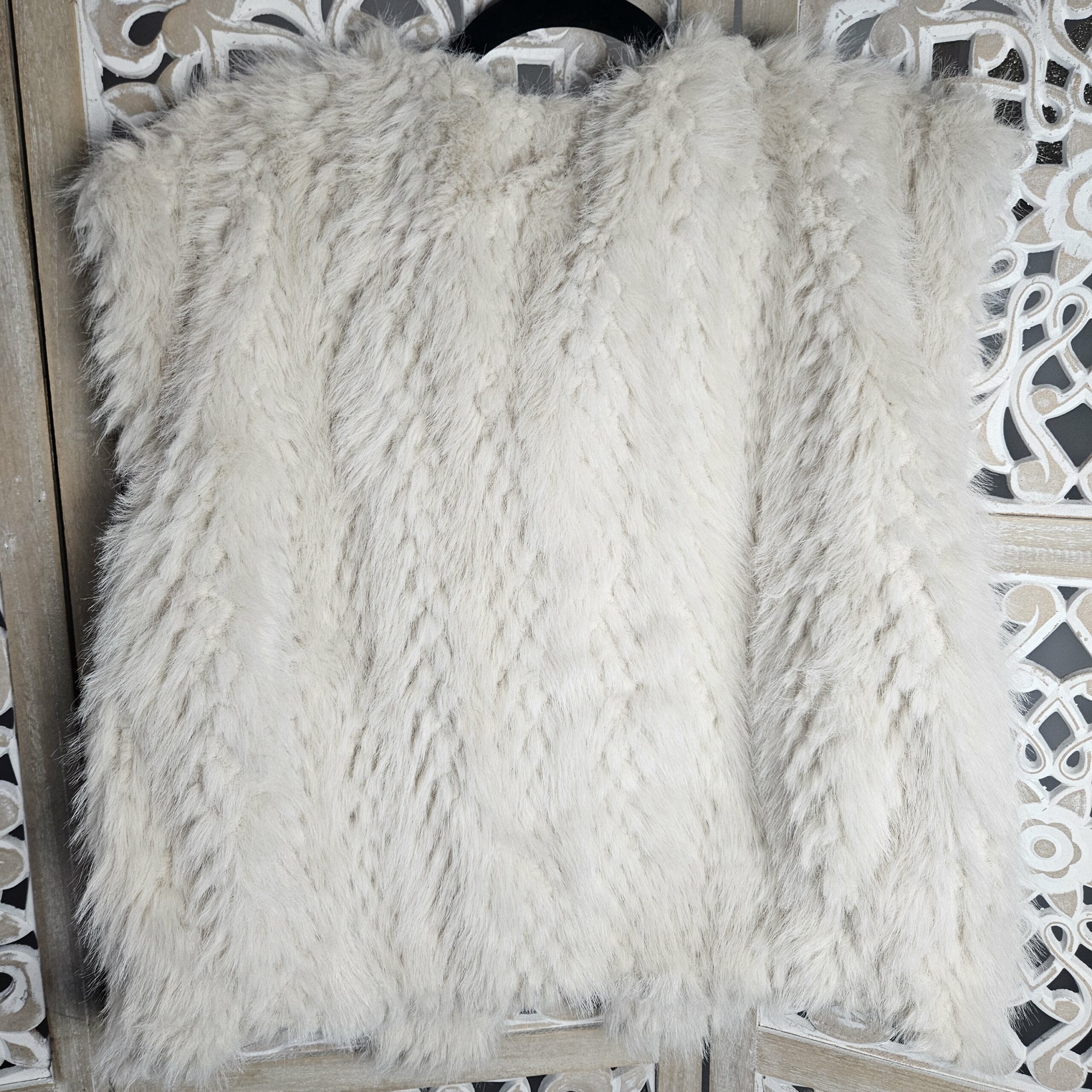 Gilet sans manches en fausse fourrure couleur écru. Fourrure de haute qualité. Col rond, 2 poches sur le côté, doublé. Un crochet en haut pour le fermer. Très doux et très chaud, à mettre sur un chemisier, une blouse, un pull, ou une mousseline. TU