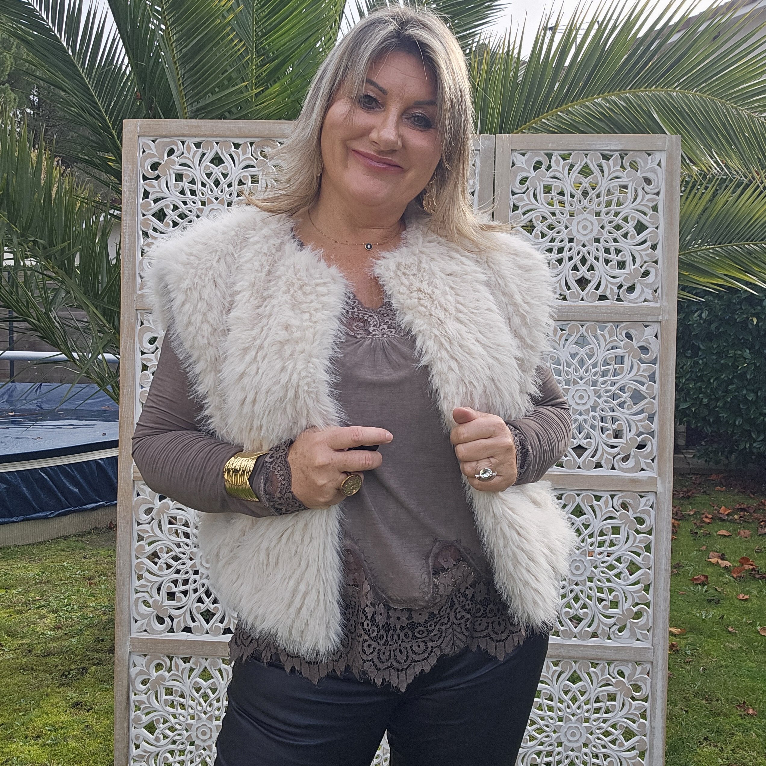 Mon regard pailleté : Gilet tendance et intemporel, à avoir absolument dans son dressing !! Très doux, et chaud, il vous apportera un look cocooning élégant pour l’hiver !!