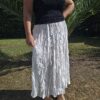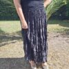 Jupe longue évasée froissée, élastique à la taille, TU.