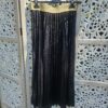 Jupe longue noire, plissée brillante, aspect cuir, élastique doré à la taille, TU.