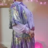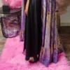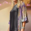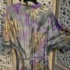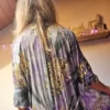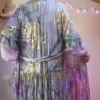 Kimono Gris, violet et doré, ceinture avec passants, poches sur le côté. Peut se porter en robe, TU.