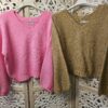 Mon regard pailleté : Pull très doux, ne contient pas de laine ! Peut se porter avec un pantalon, un jean’s ou une jupe.