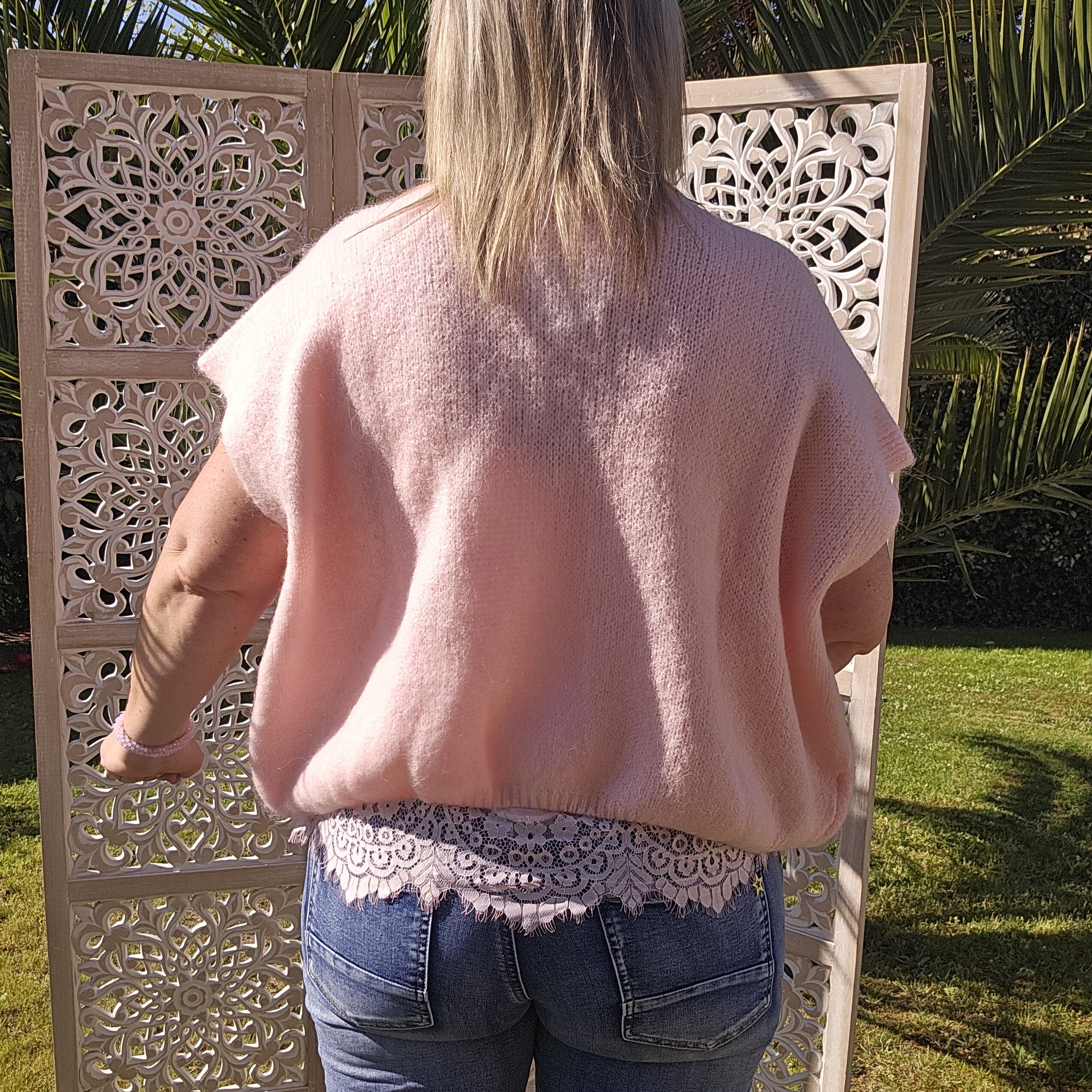 Mon regard pailleté : Pull très doux, peut se porter seul ou avec un top dentelle à manches longues, accompagné d’un pantalon, un jean’s ou une jupe.
