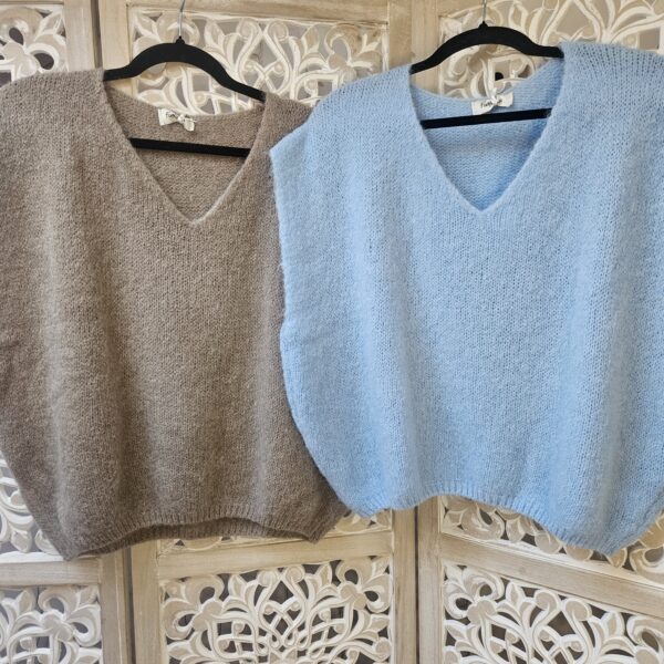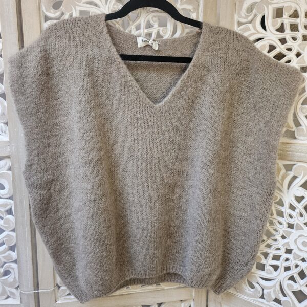 Pull col V sans manches , très doux par la présence de baby alpaga, ne pique absolument pas !