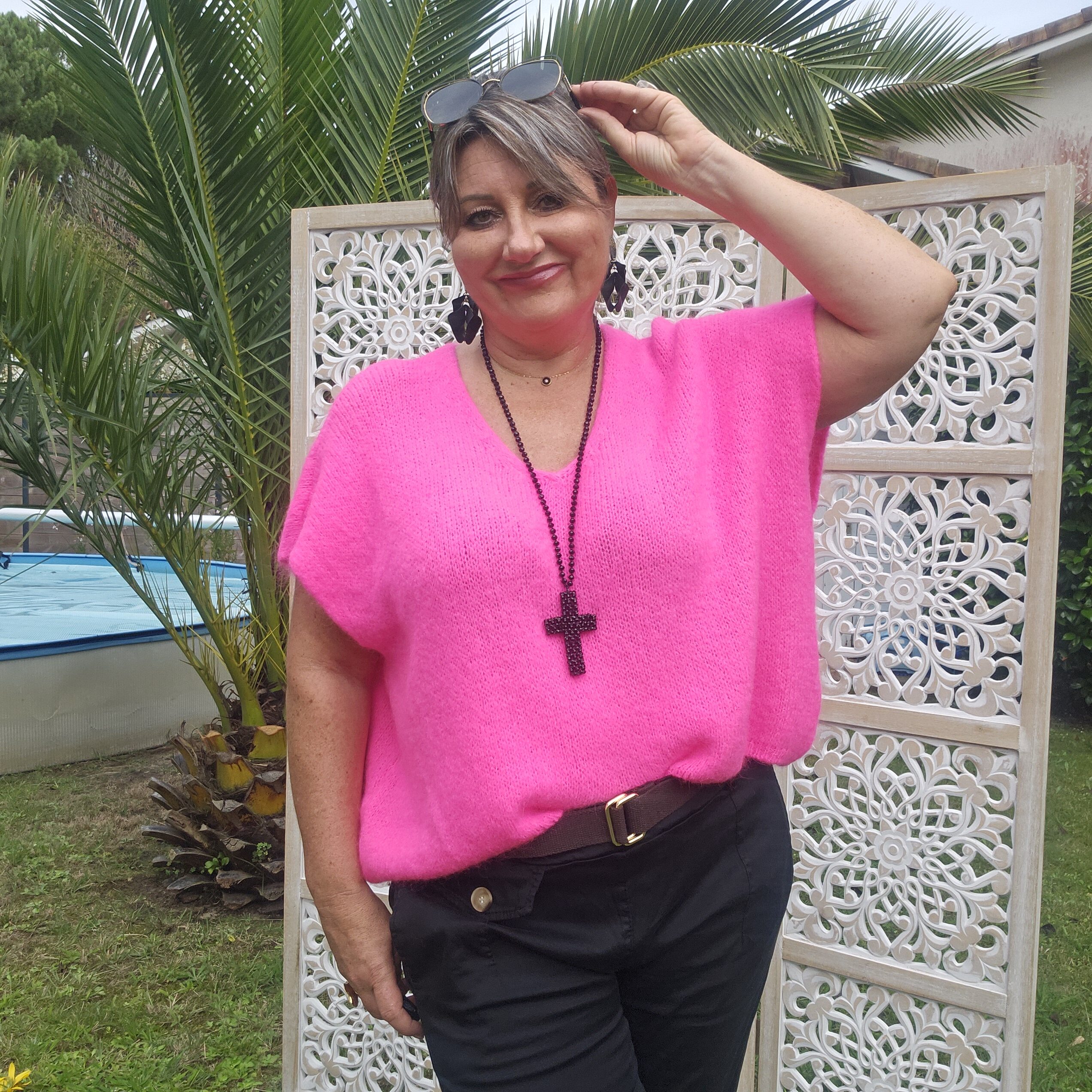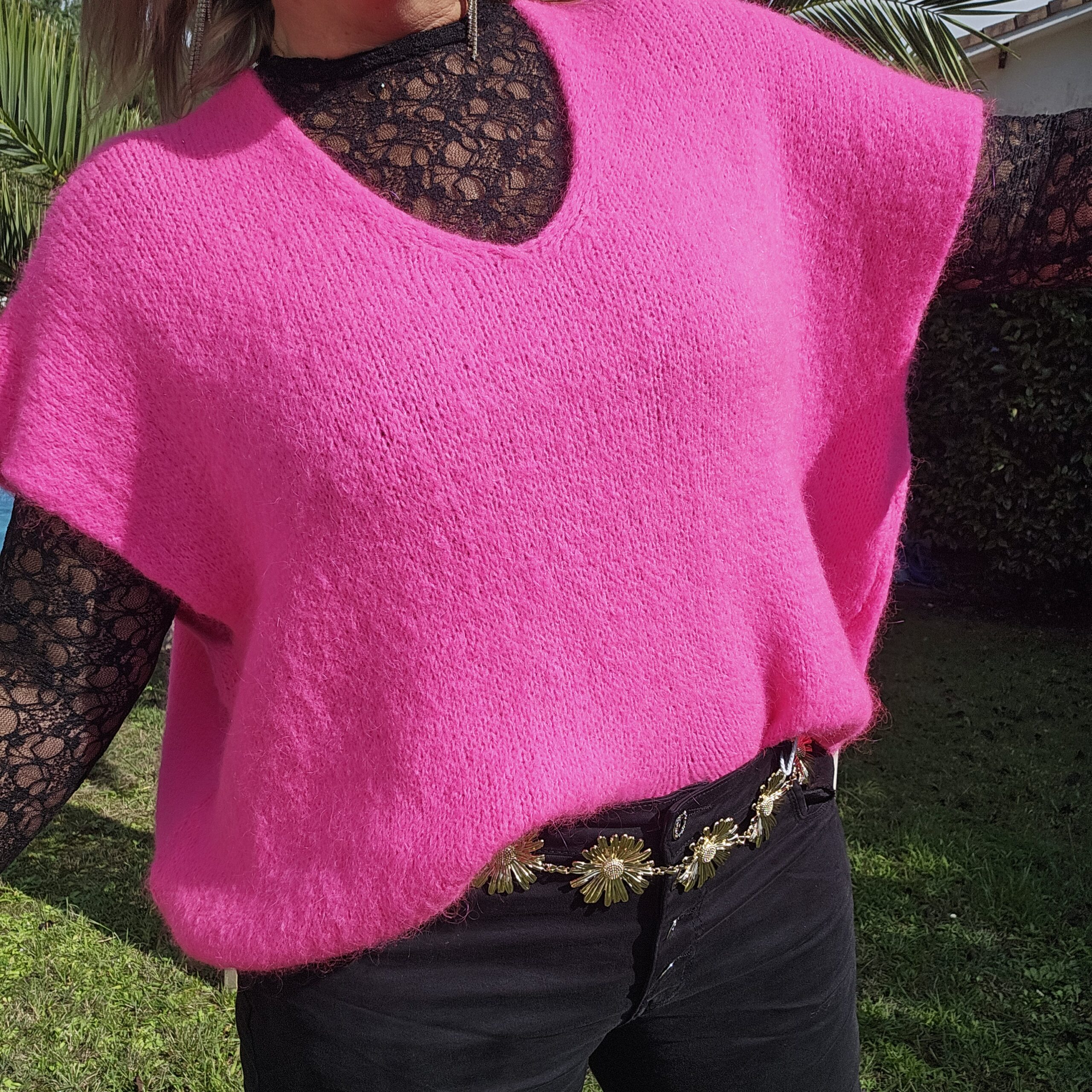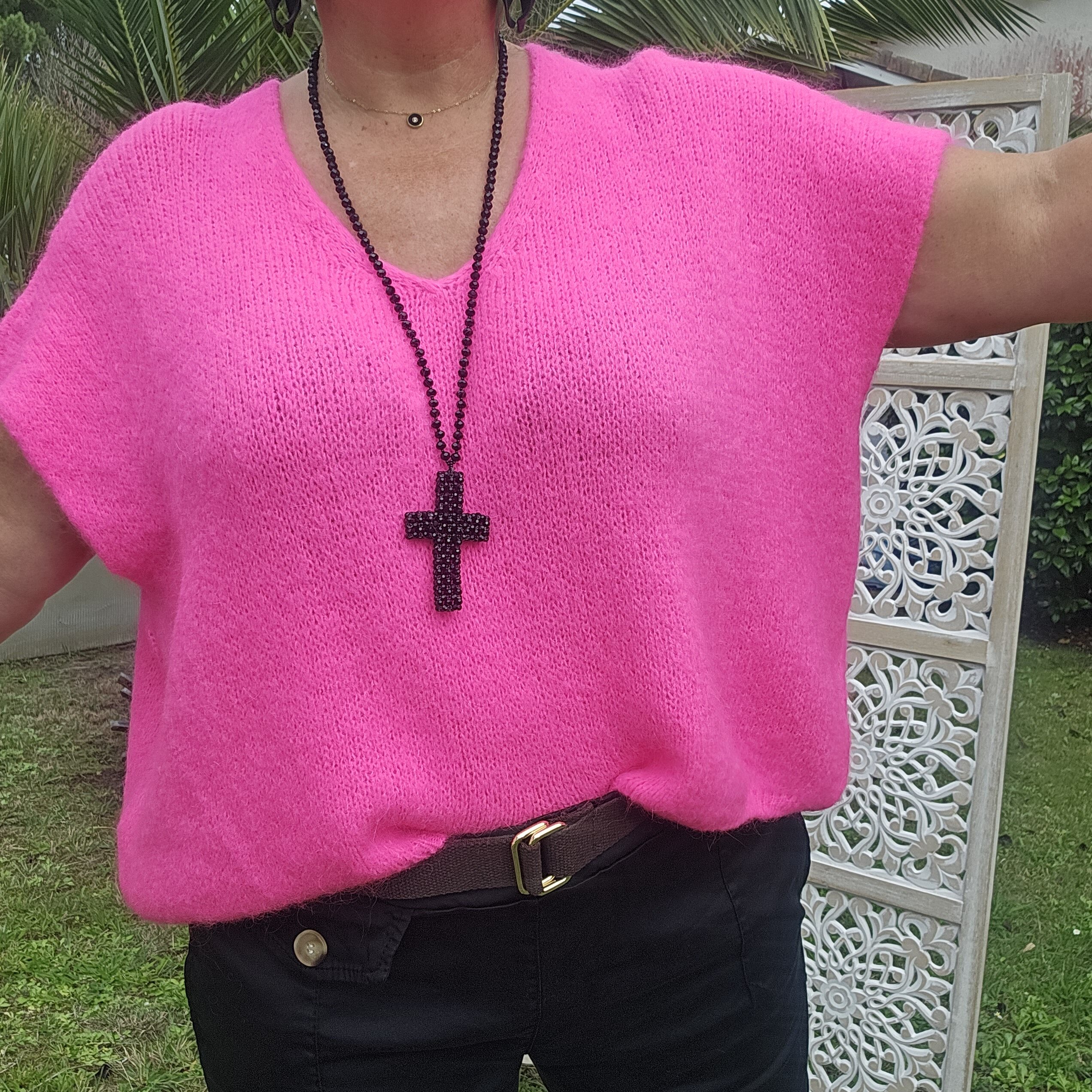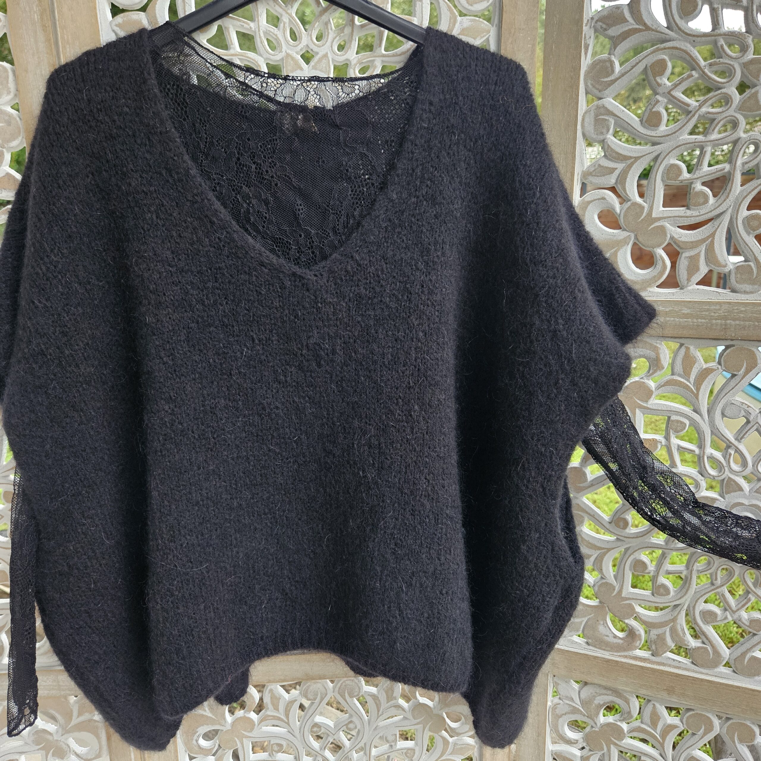 Mon regard pailleté : Pull très doux, peut se porter seul ou avec un top dentelle à manches longues, ou une chemise, accompagné d’un pantalon, un jean’s ou une jupe.