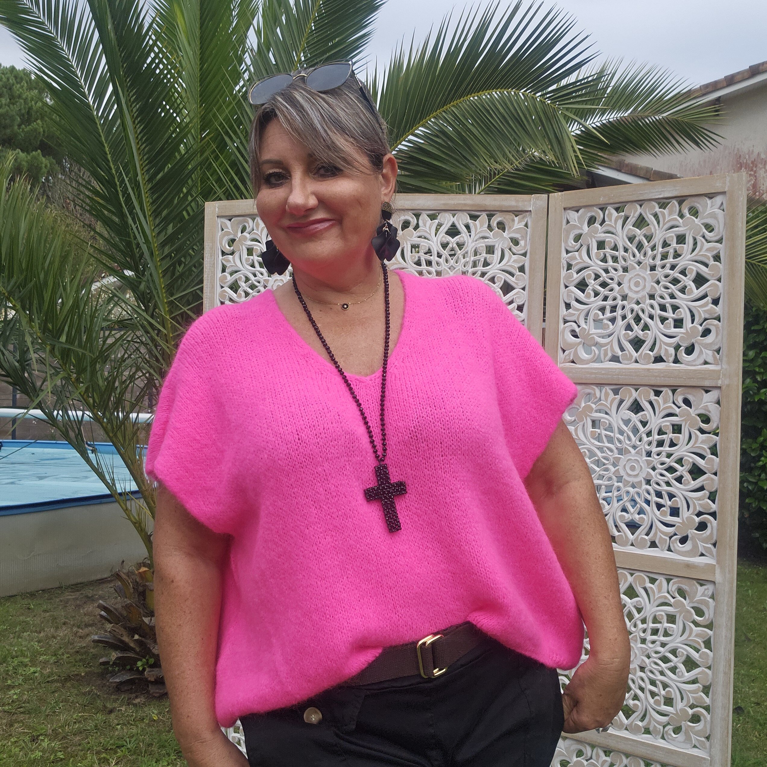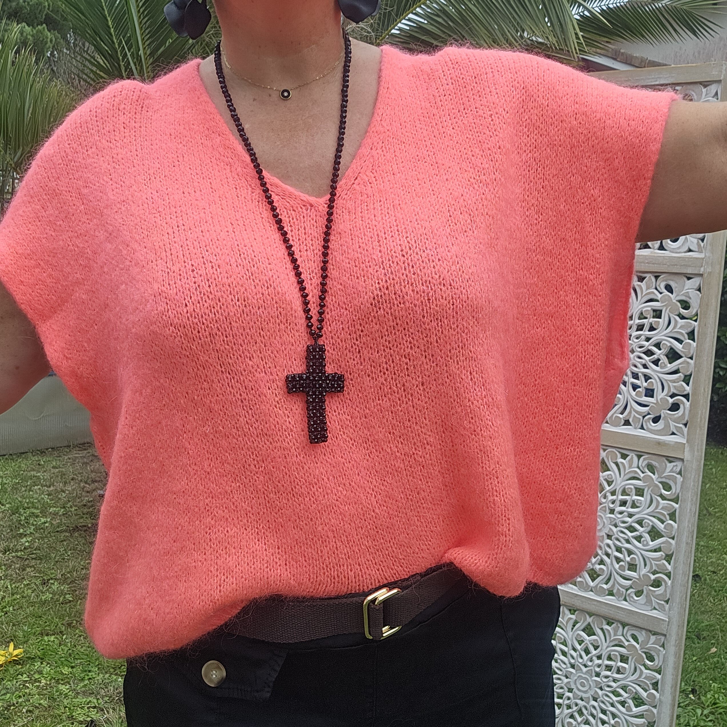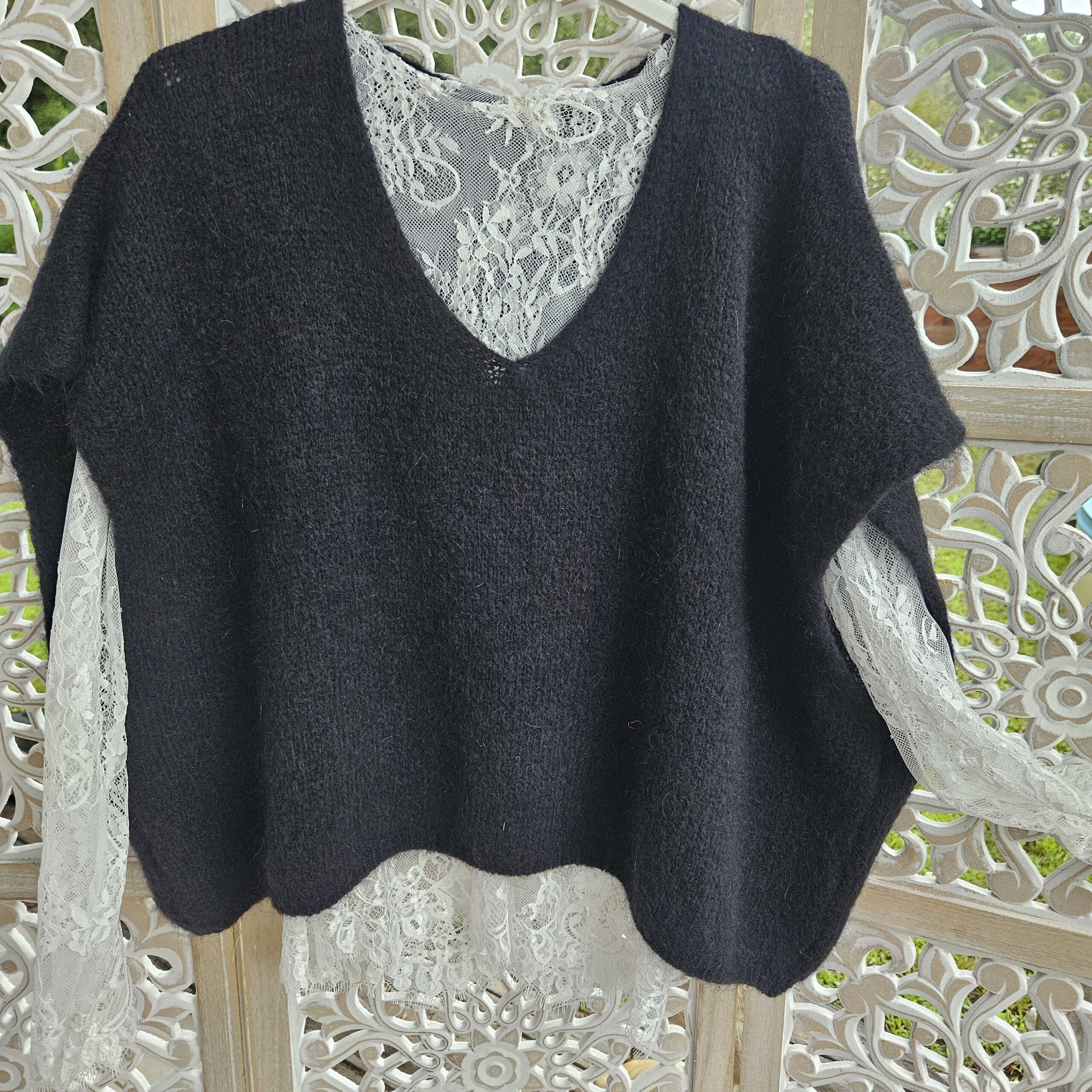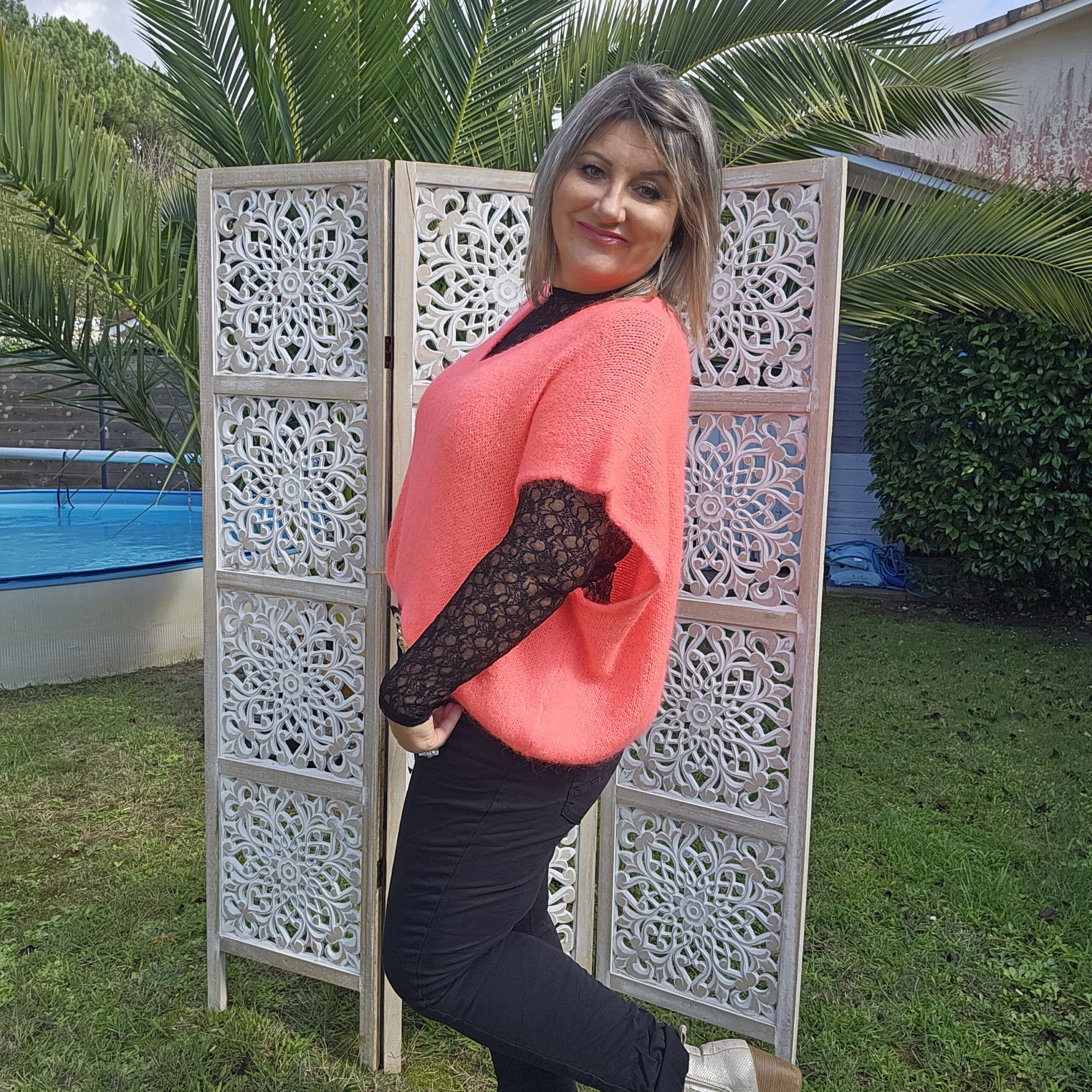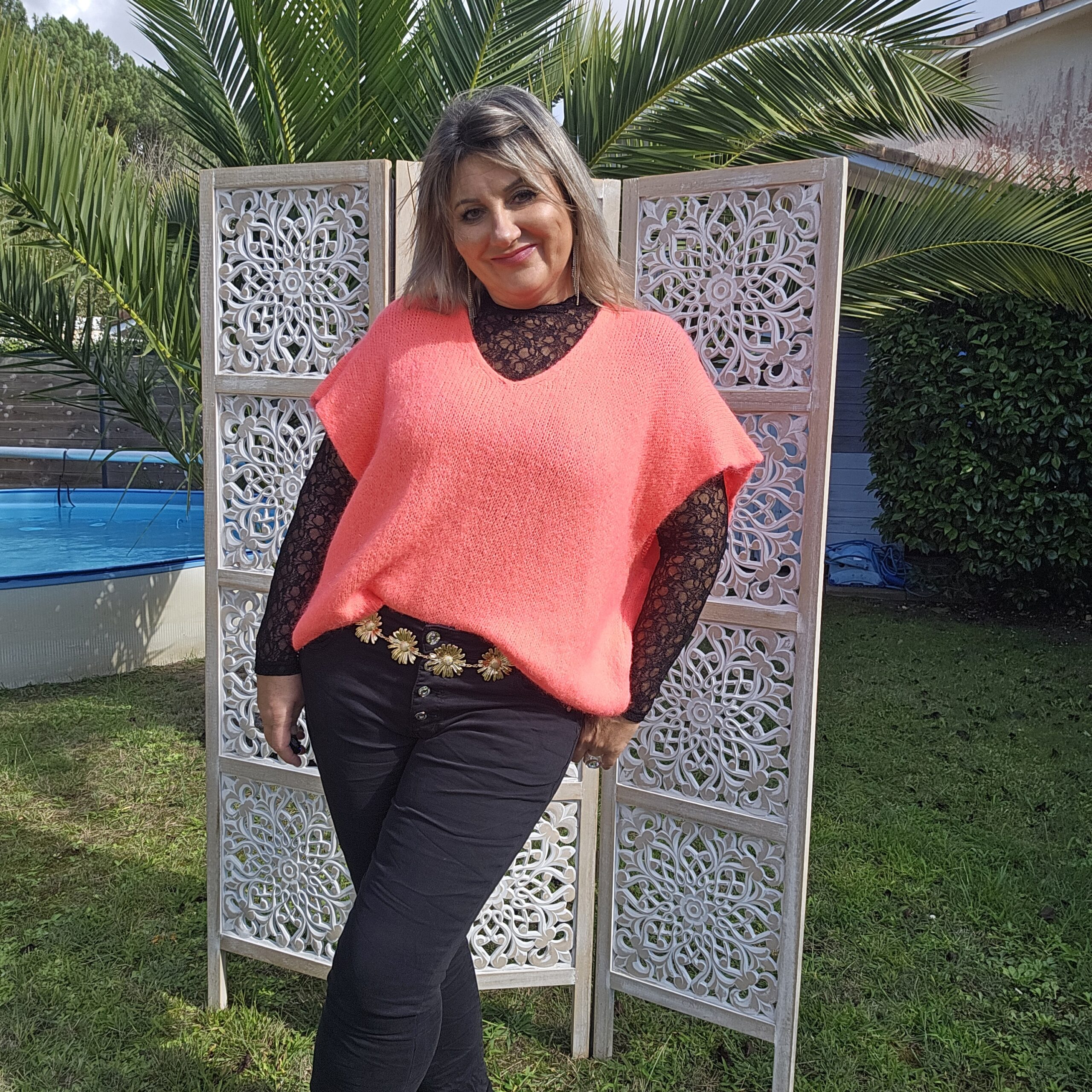 Mon regard pailleté : Pull très doux, peut se porter seul ou avec un top dentelle à manches longues, ou une chemise, accompagné d’un pantalon, un jean’s ou une jupe.