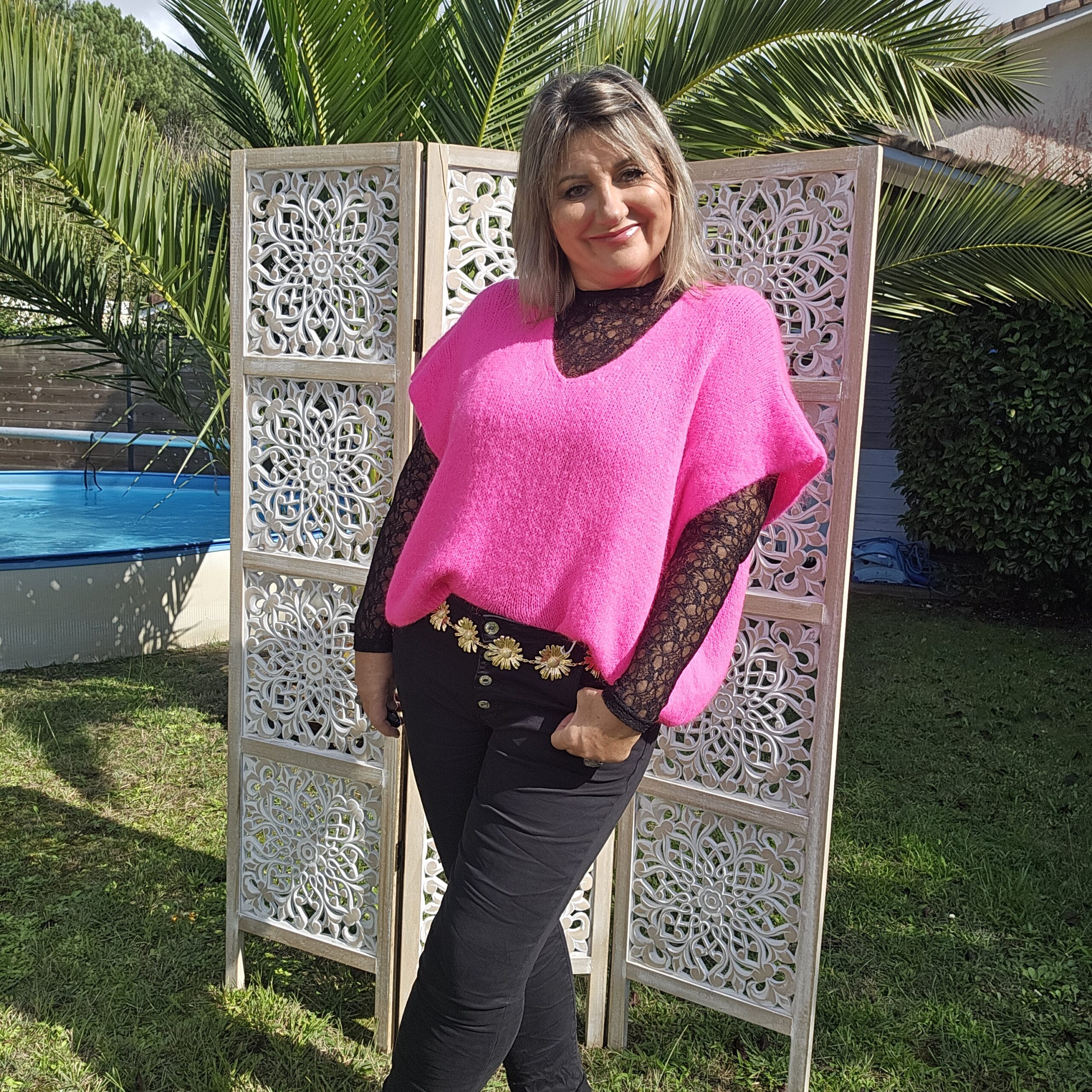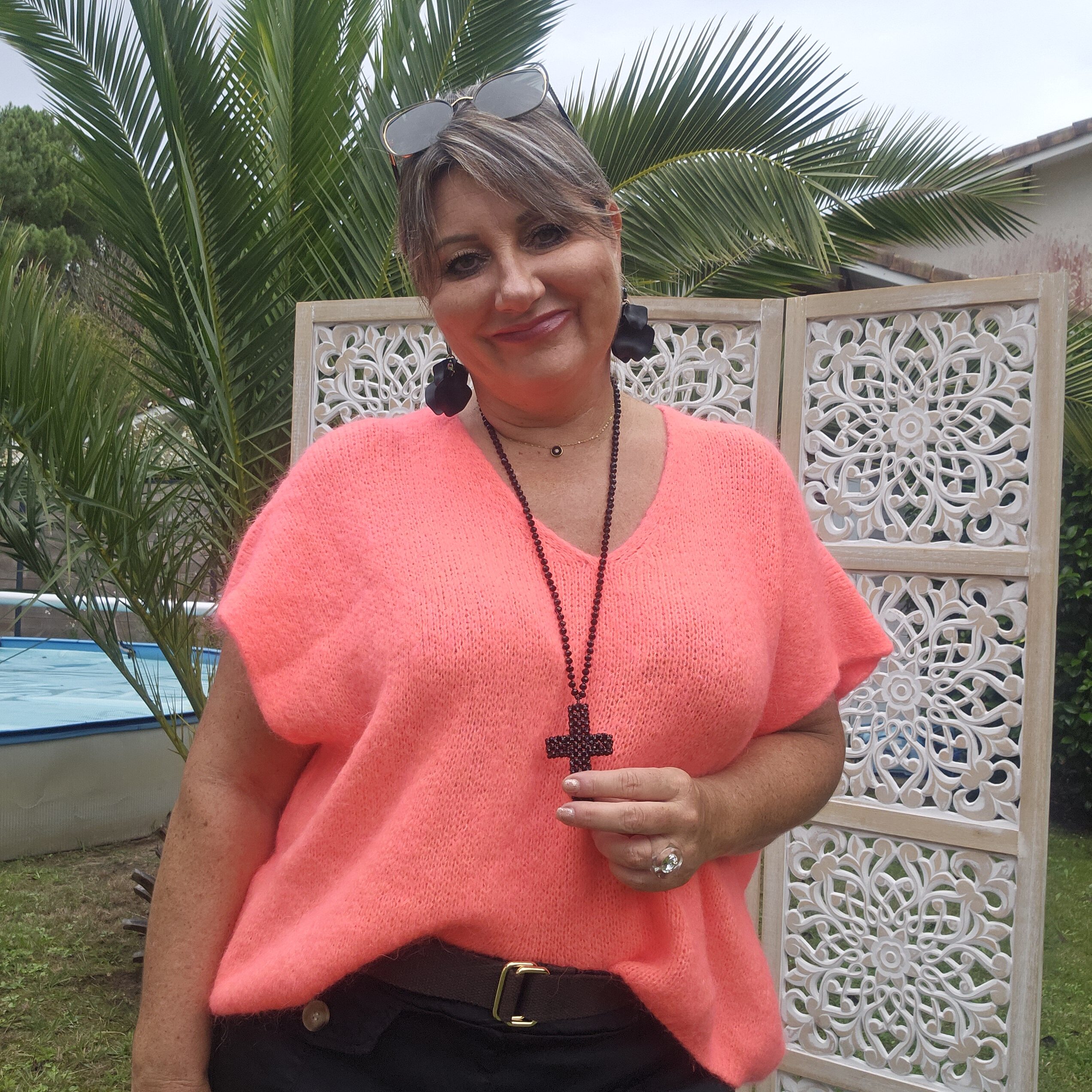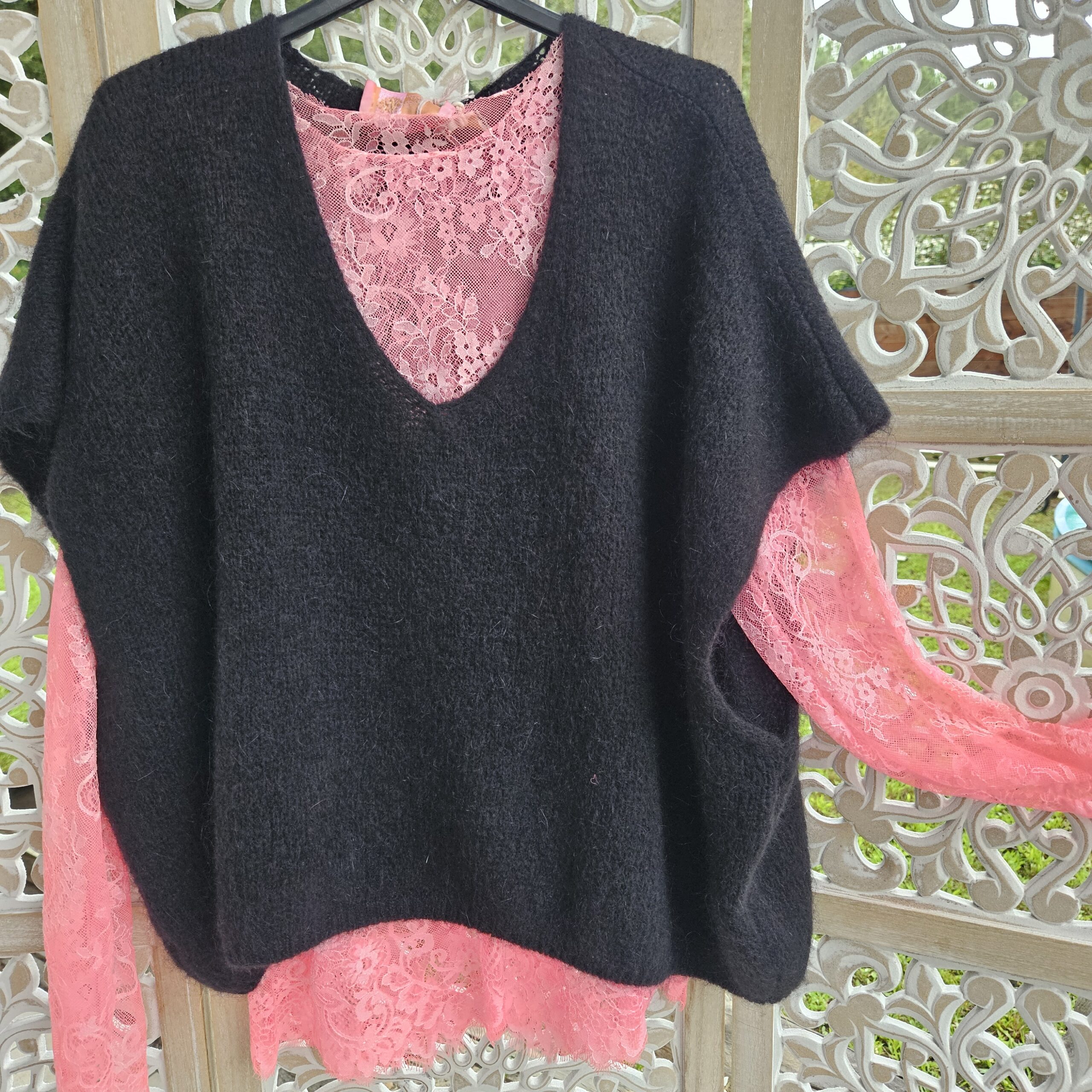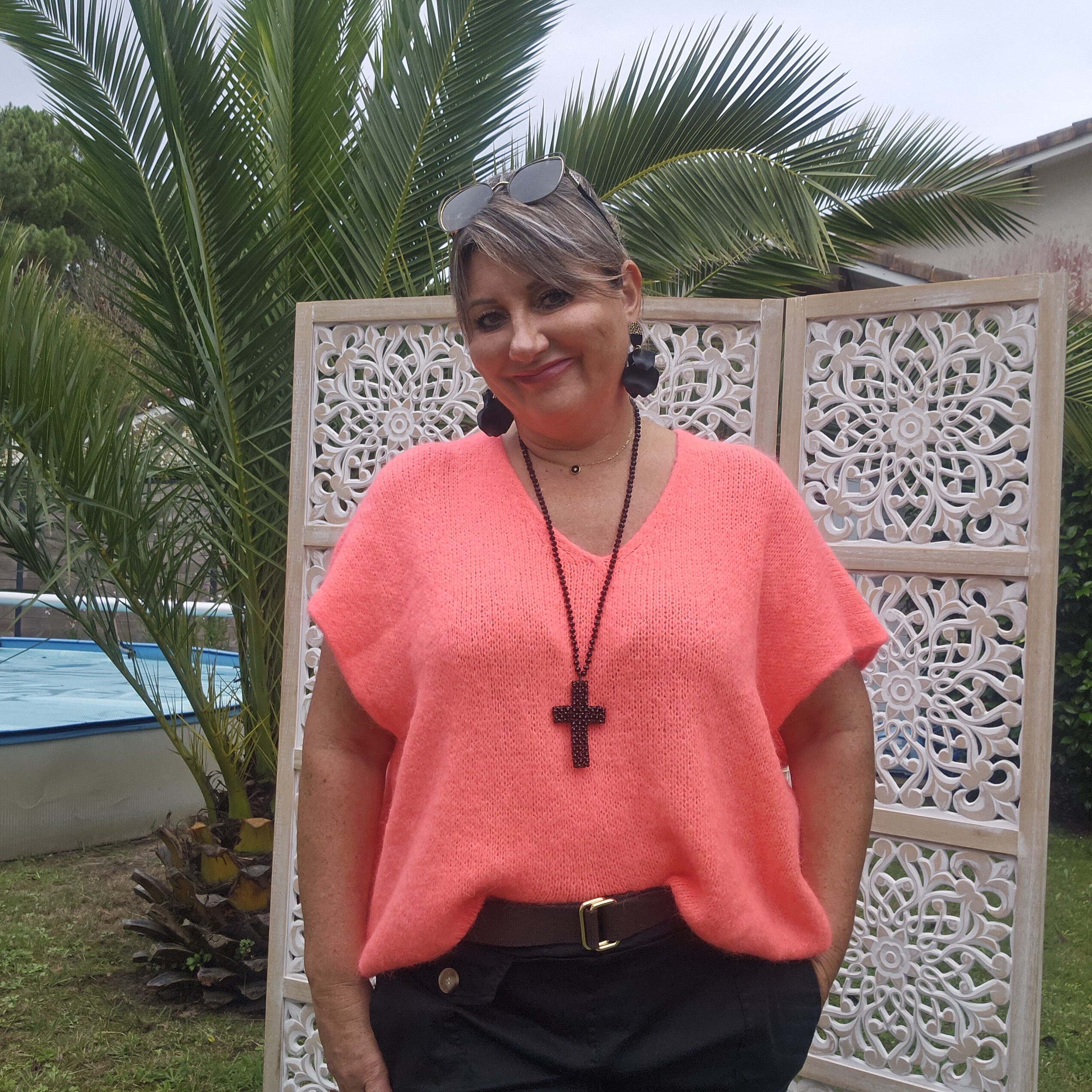 Mon regard pailleté : Pull très doux, peut se porter seul ou avec un top dentelle à manches longues, ou une chemise, accompagné d’un pantalon, un jean’s ou une jupe.