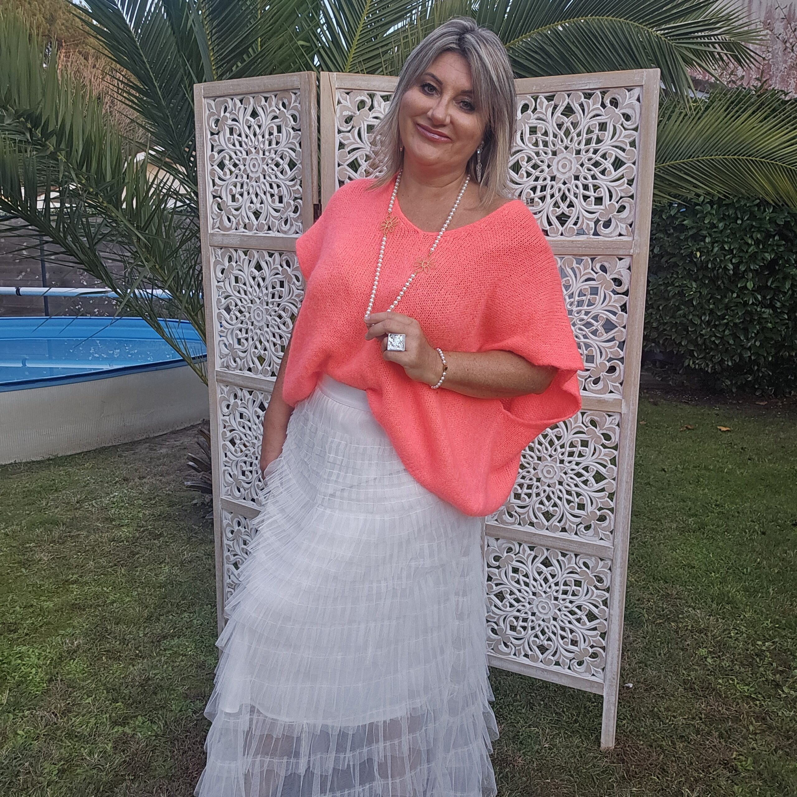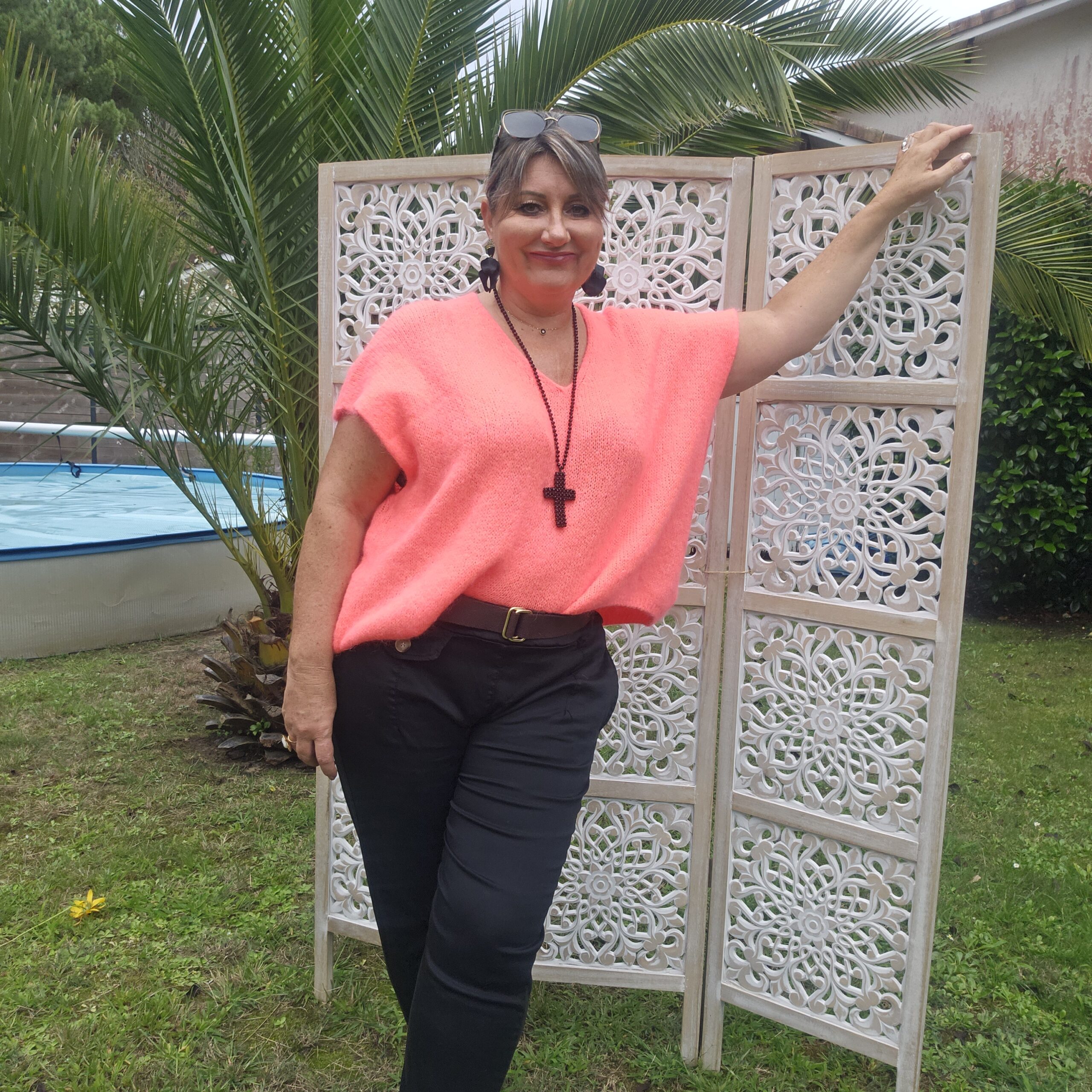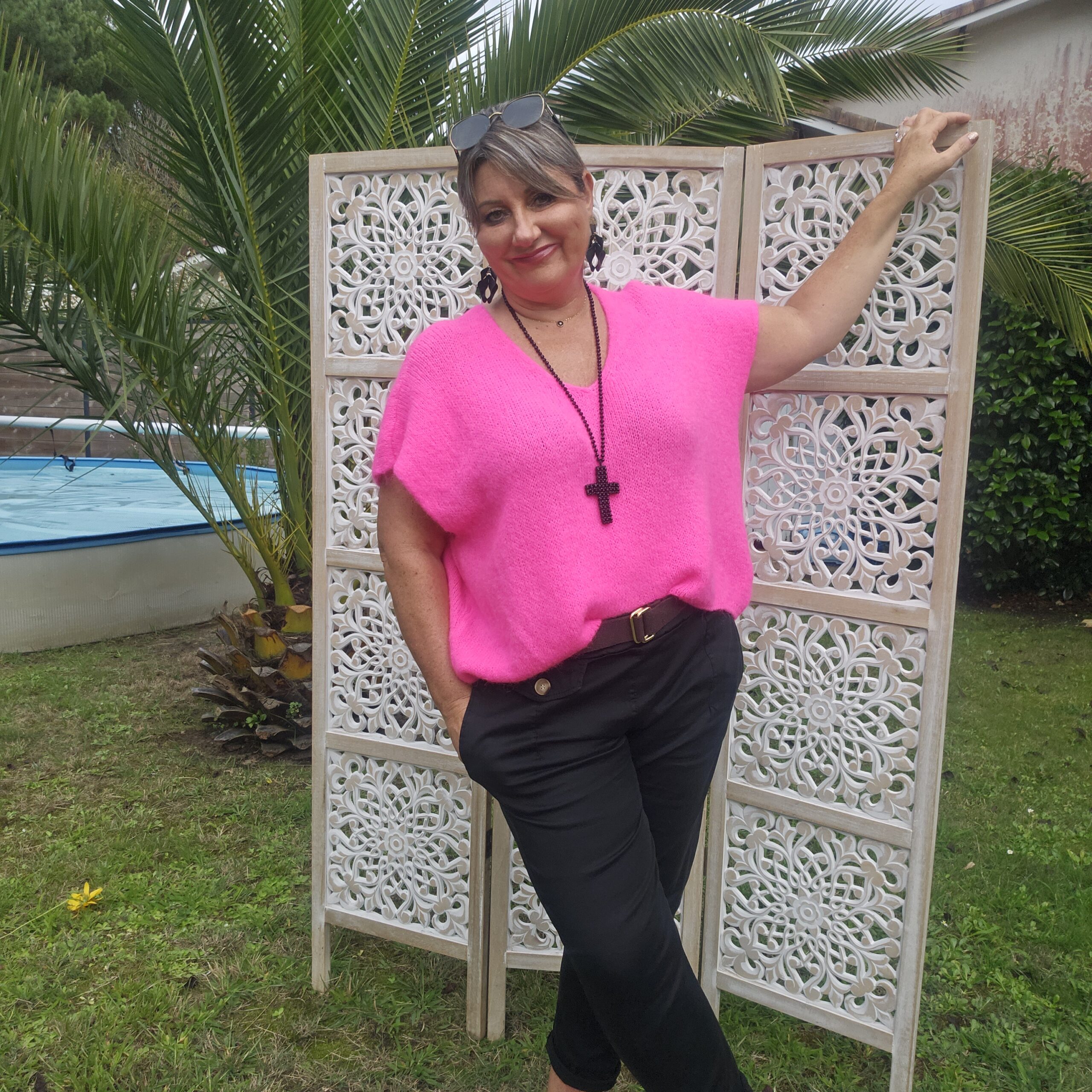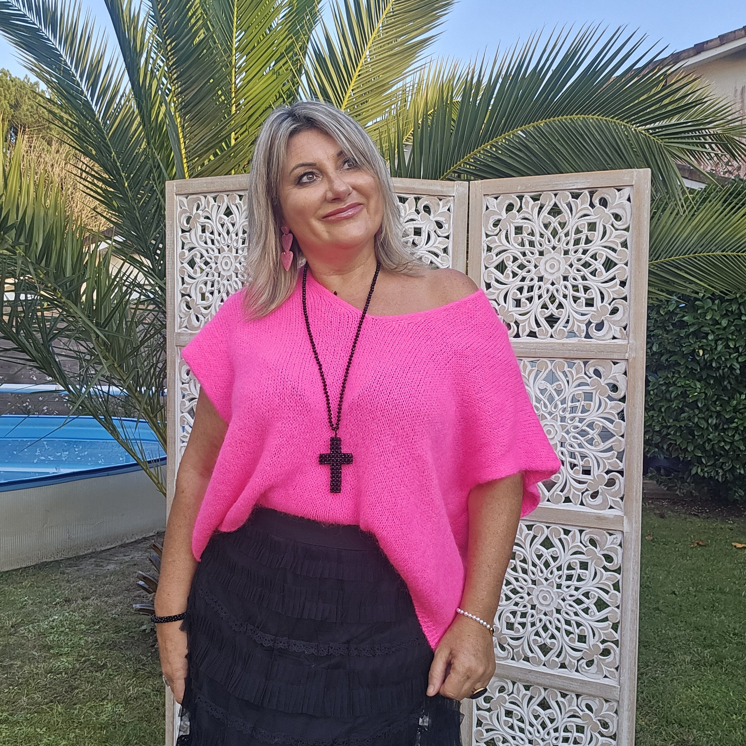 Mon regard pailleté : Pull très doux, peut se porter seul ou avec un top dentelle à manches longues, ou une chemise, accompagné d’un pantalon, un jean’s ou une jupe.