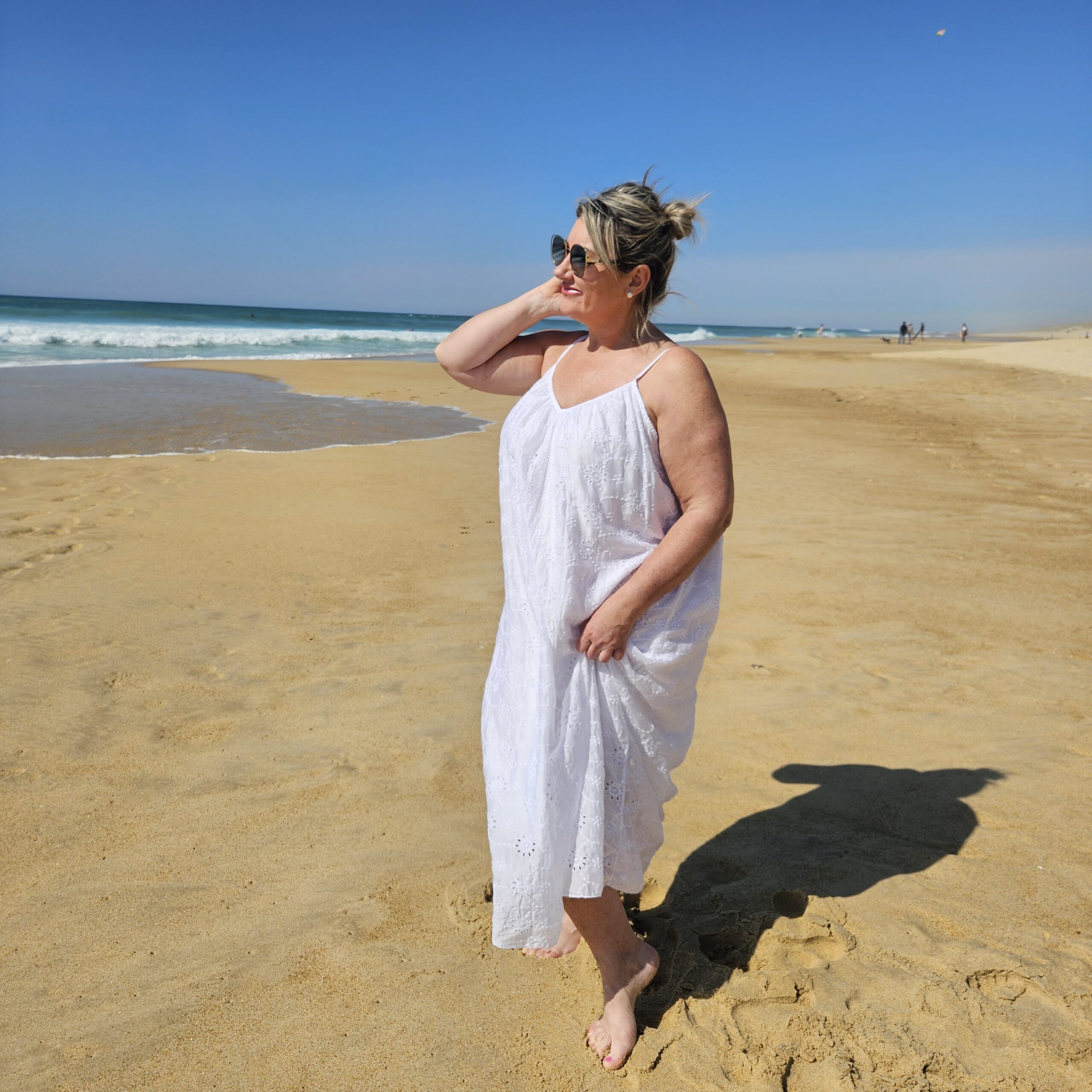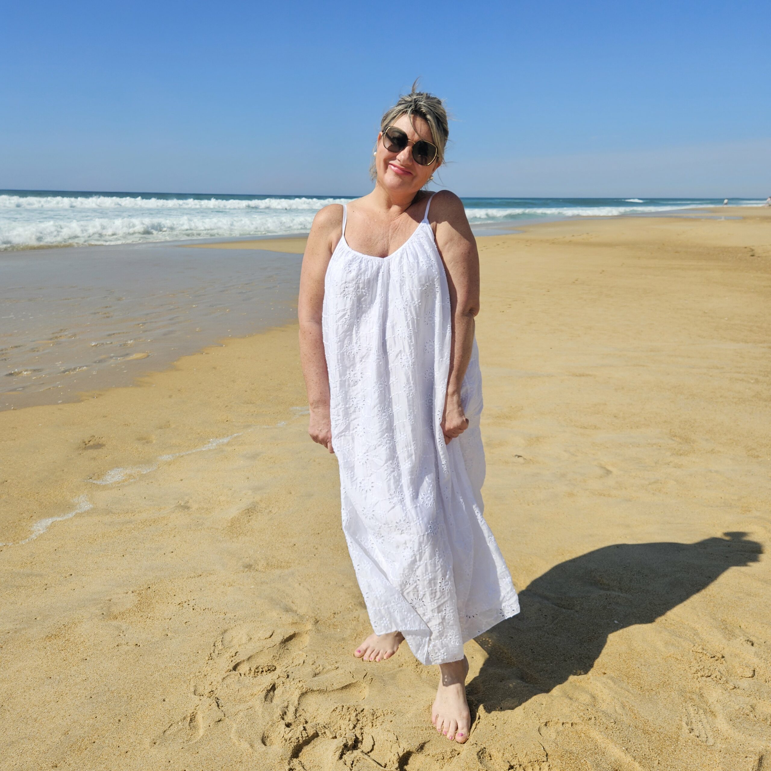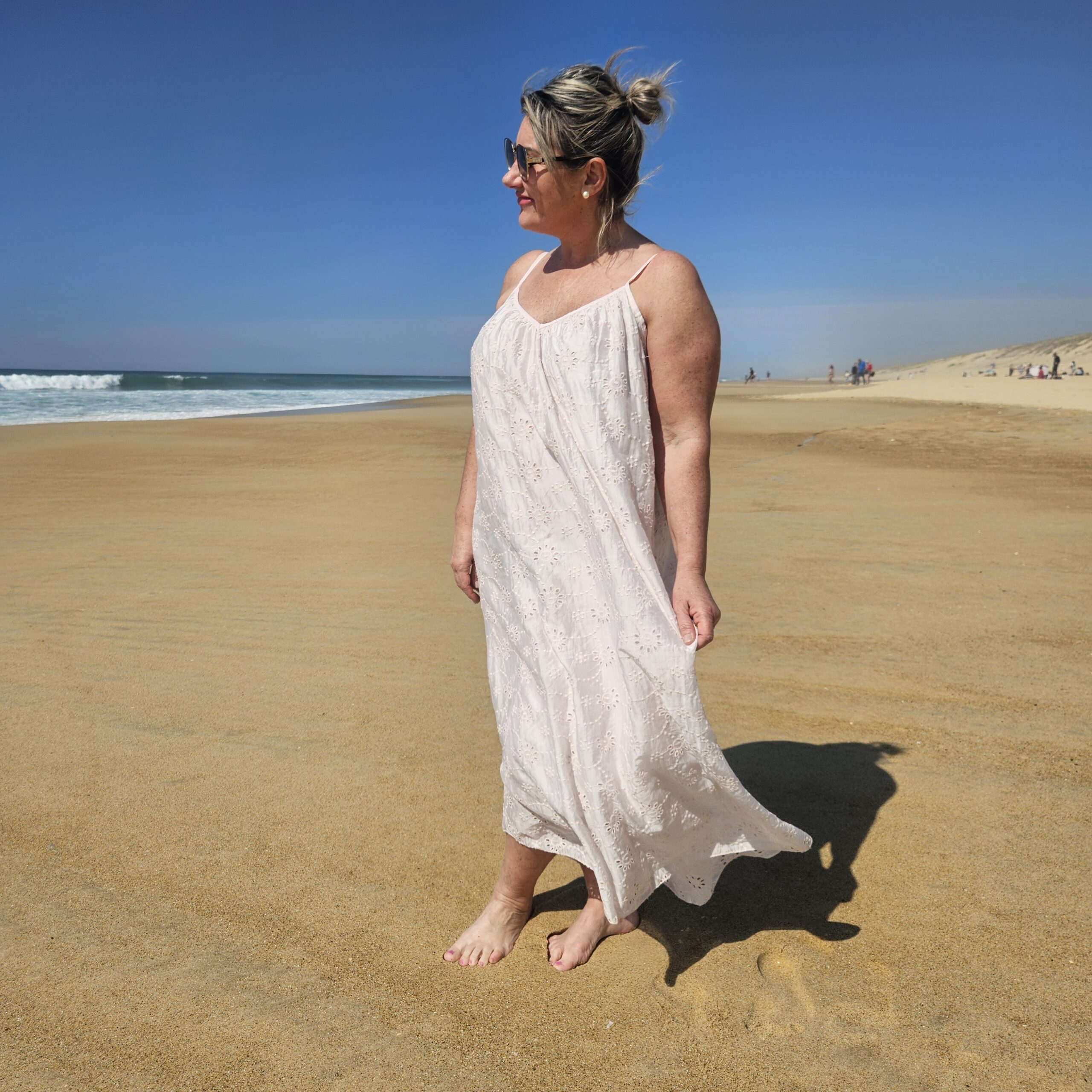 Mon regard pailleté : On aime cette longue robe en dentelle anglaise, ainsi que sa composition en soie et coton, Convient à toute les morphologies !