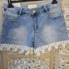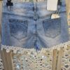 Short en jean’s avec une dentelle magnifique et strass autour de la cuisse, deux poches devant, et derrière , en coton et élasthanne, très extensible.