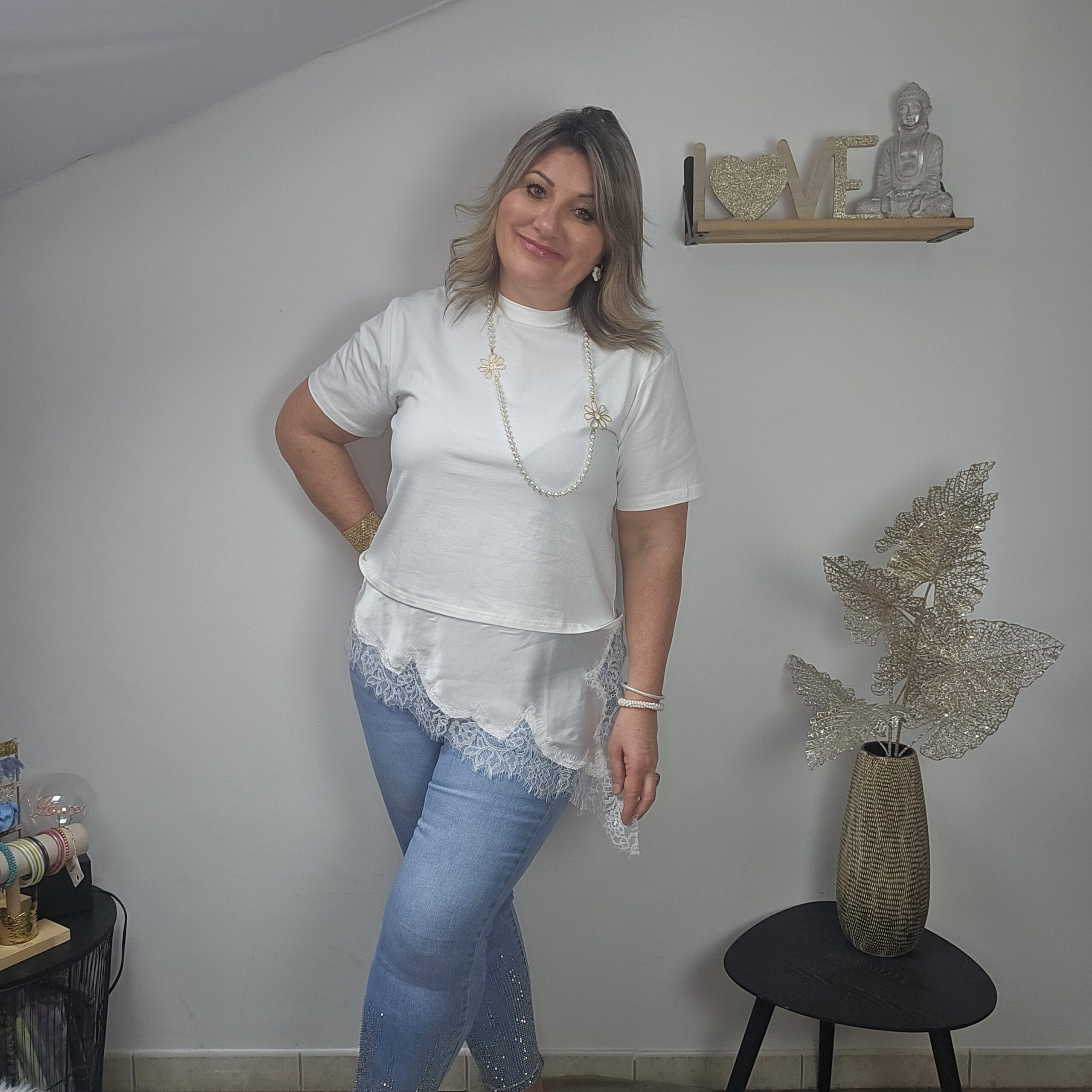 Longueur t shirt : 51 cm avec dentelle : 64/84 cm