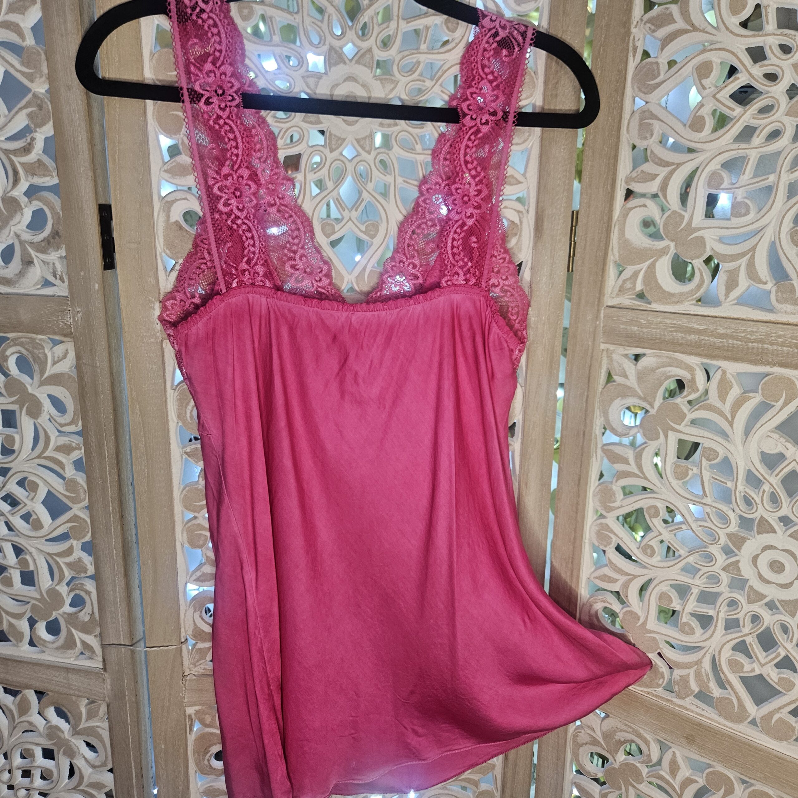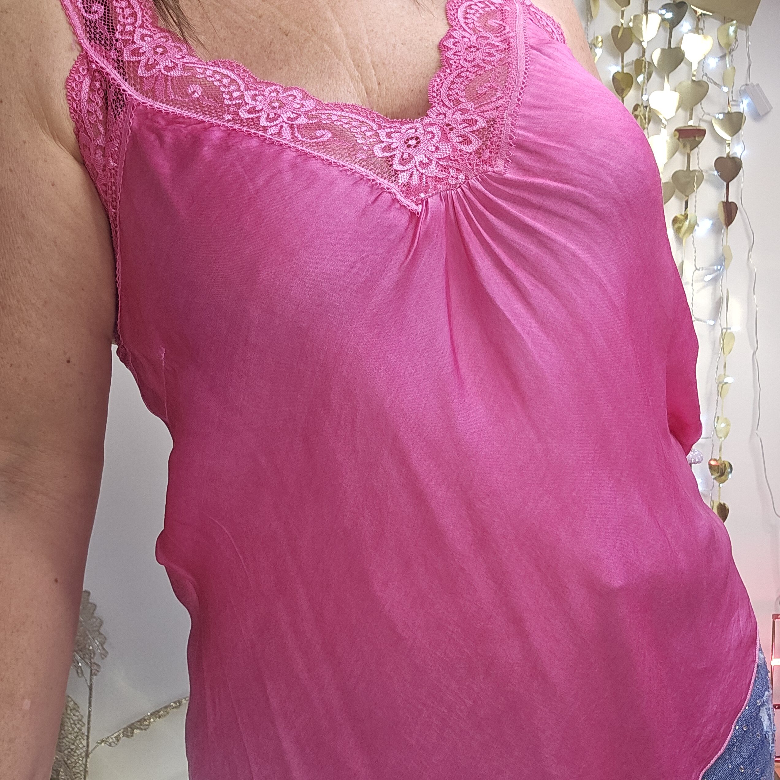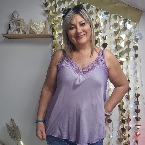 Top en dentelle, bretelles et poitrine, dos élastique, évasé en bas, TU.