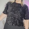 Top avec manches courtes et des sequins couleur Noir, doublé, col arrondit. Magnifique !
