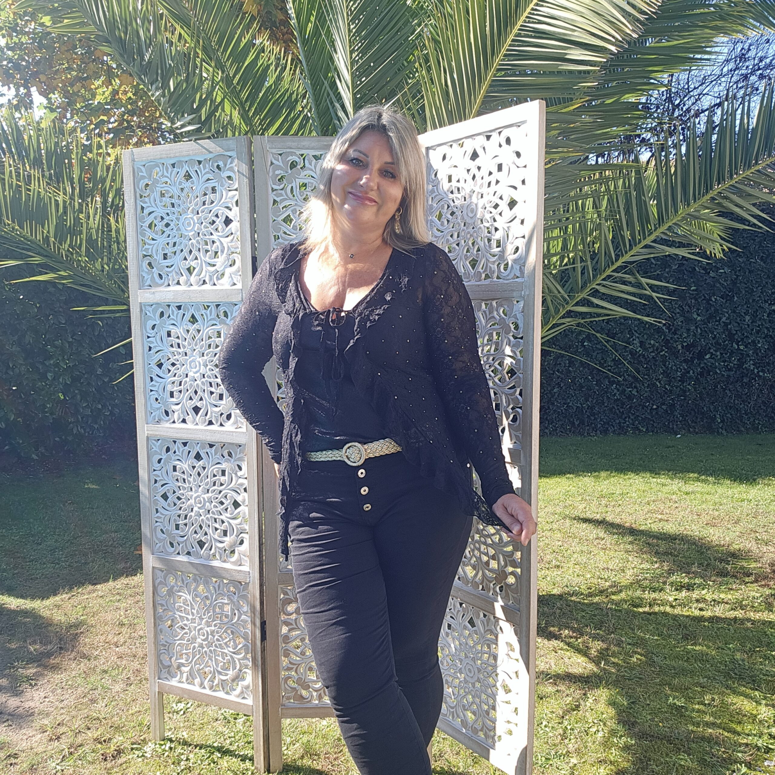 Mon regard pailleté : Ce top en dentelle cloutée, donne du style à vos tenues. Magnifique, indispensable à avoir absolument dans son dressing pour cet automne ! A porter avec ou sans top en dessous ! Idéal pour les petites tailles.
