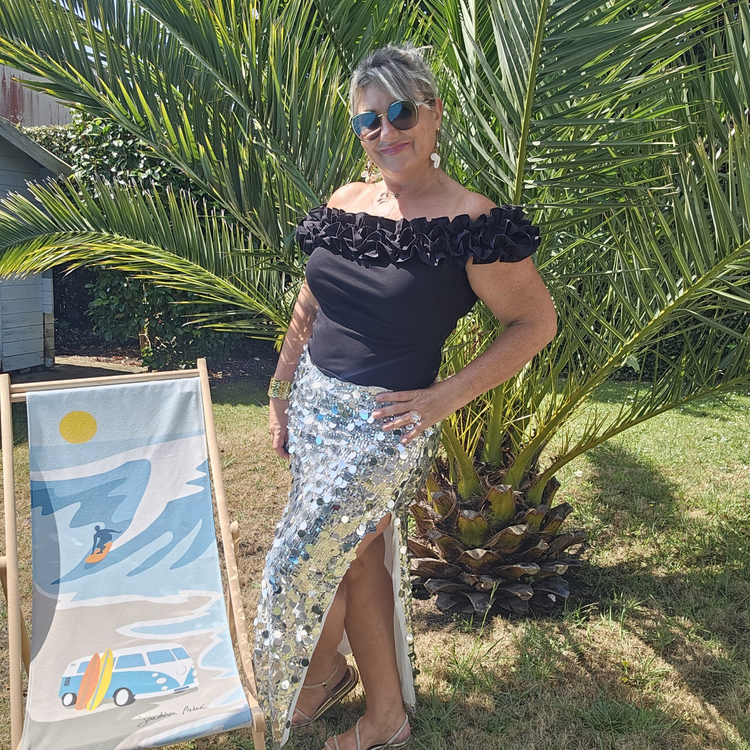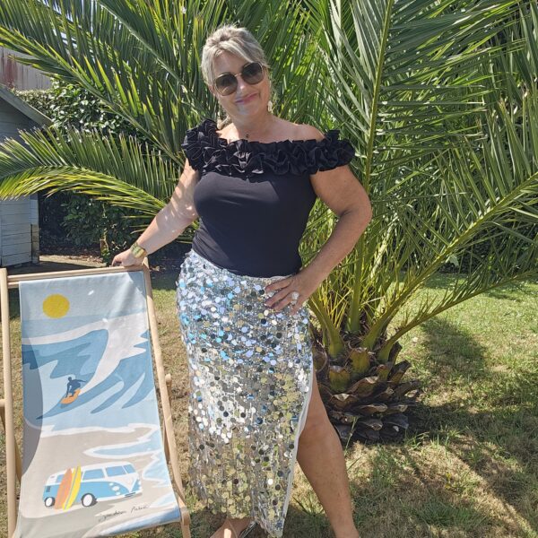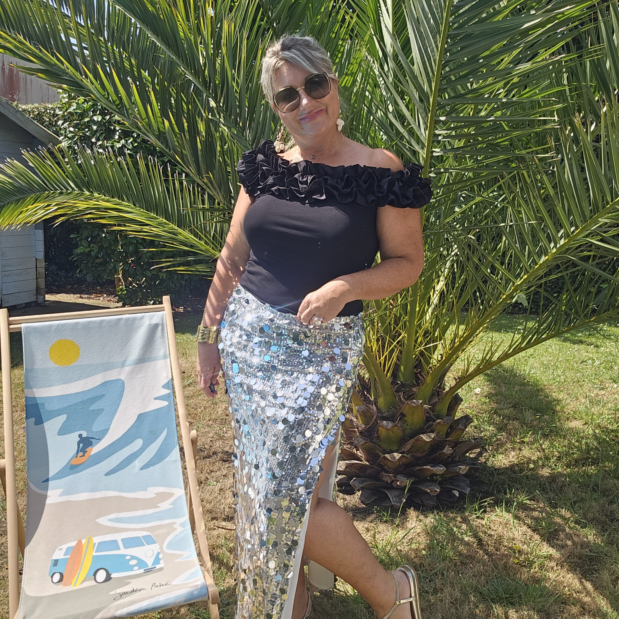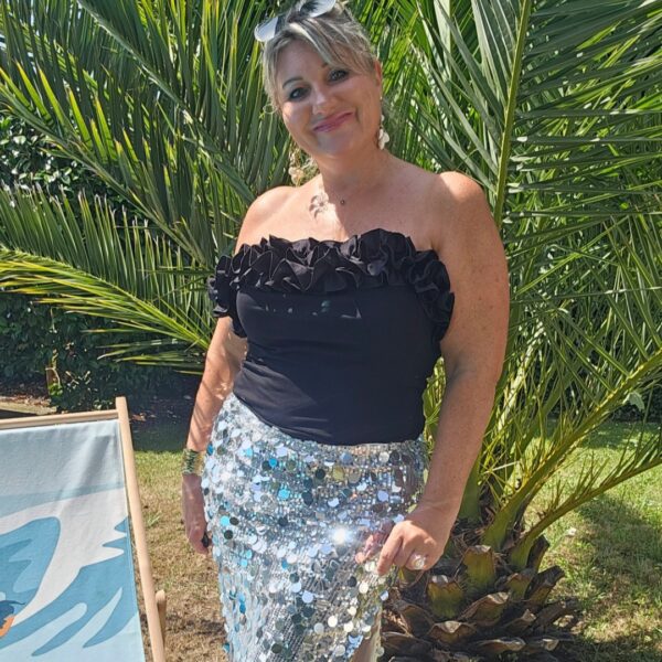 Mon regard pailleté : Top indispensable, on aime les froufrous autour du décolleté. Peut se porter avec un pantalon, jean’s ou jupe.